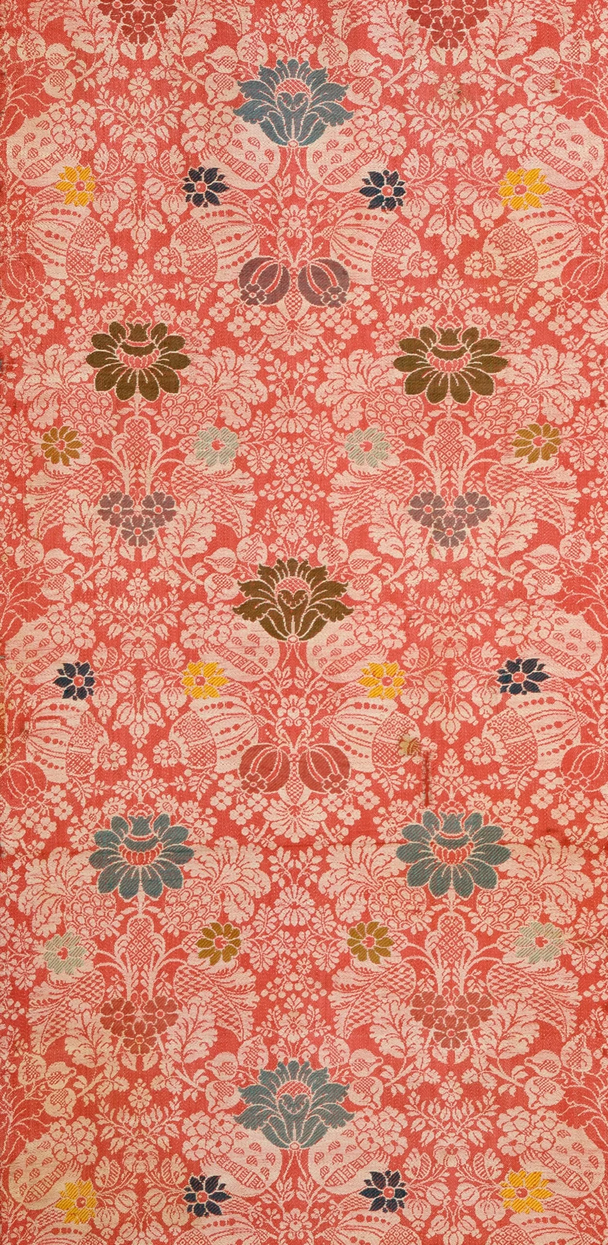 - Wool damask with wool discontinous supplementary-weft patterning (brocade)