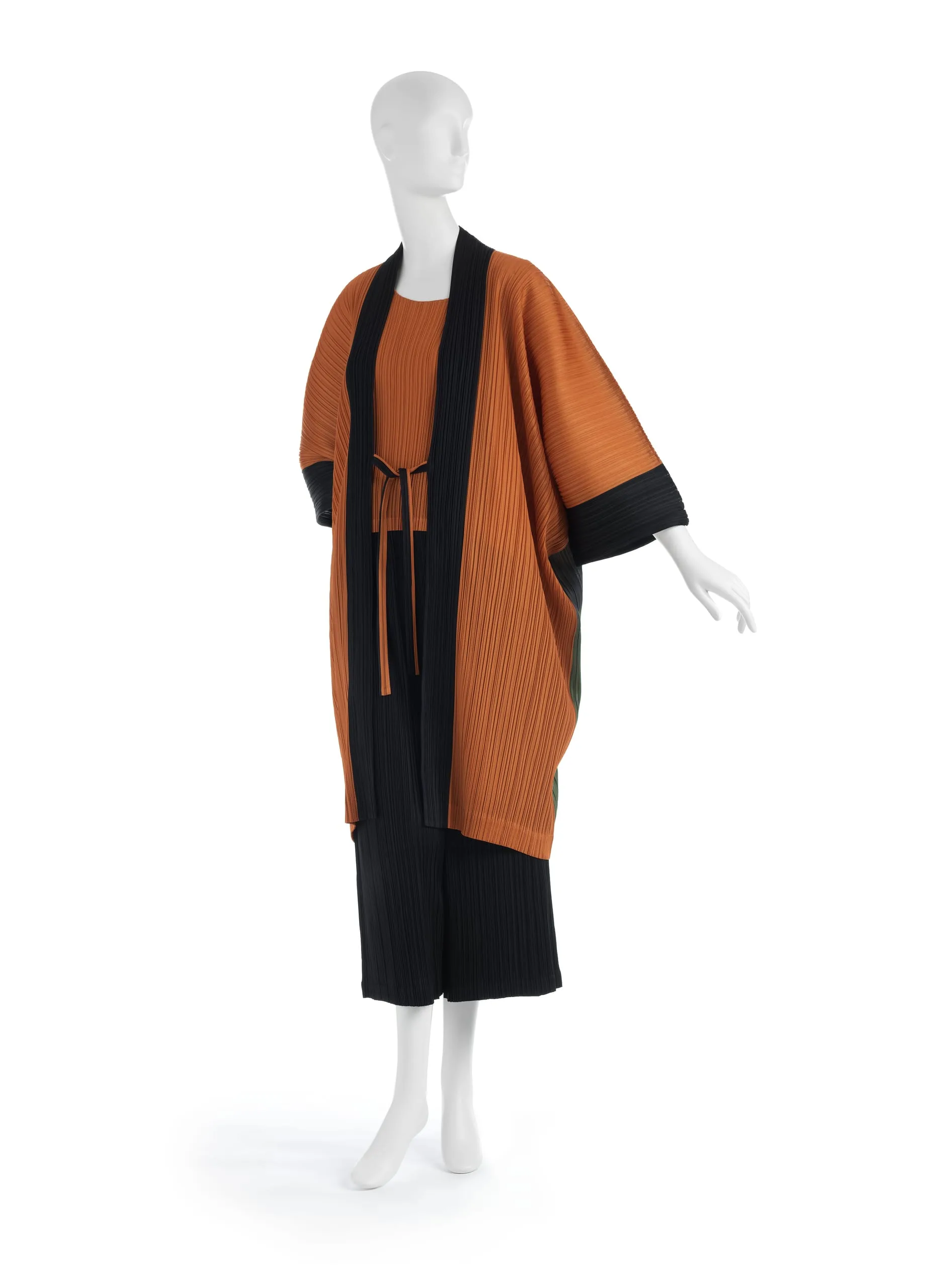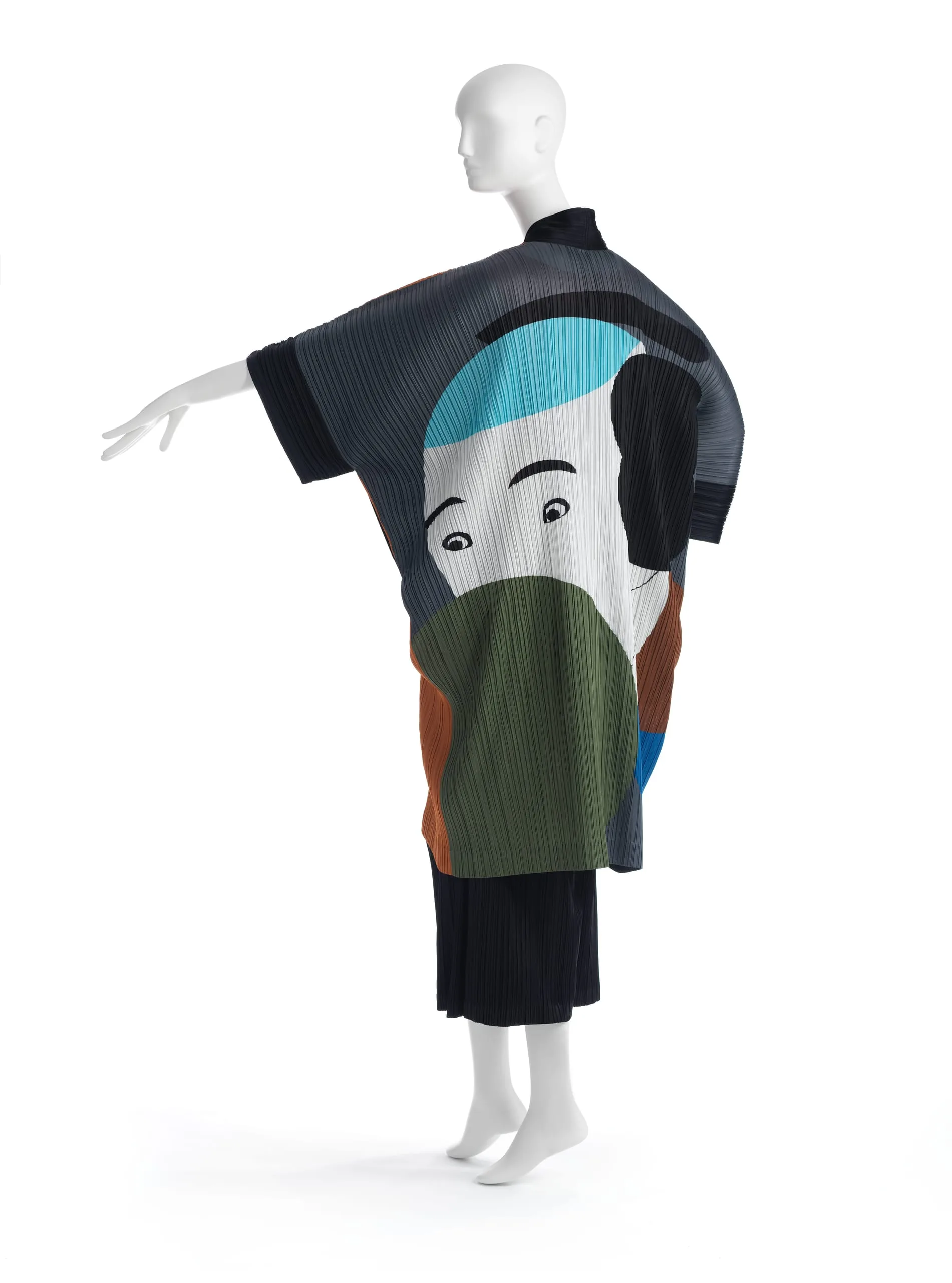 - 'Sharaku' Coat: Polyester knit, printed, heat- and pressure-set pleats