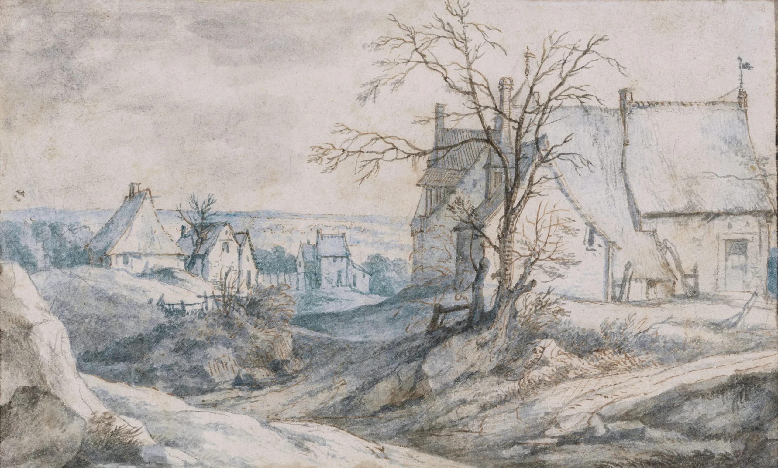 - Pen and brown ink and wash (or watercolor), over traces of black chalk