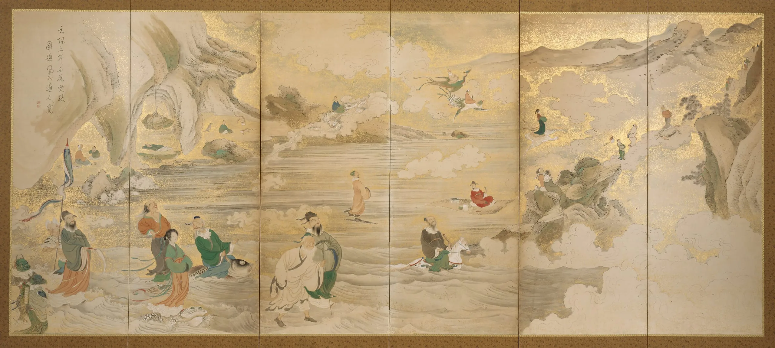 - Ink, color, and gold paint on paper
