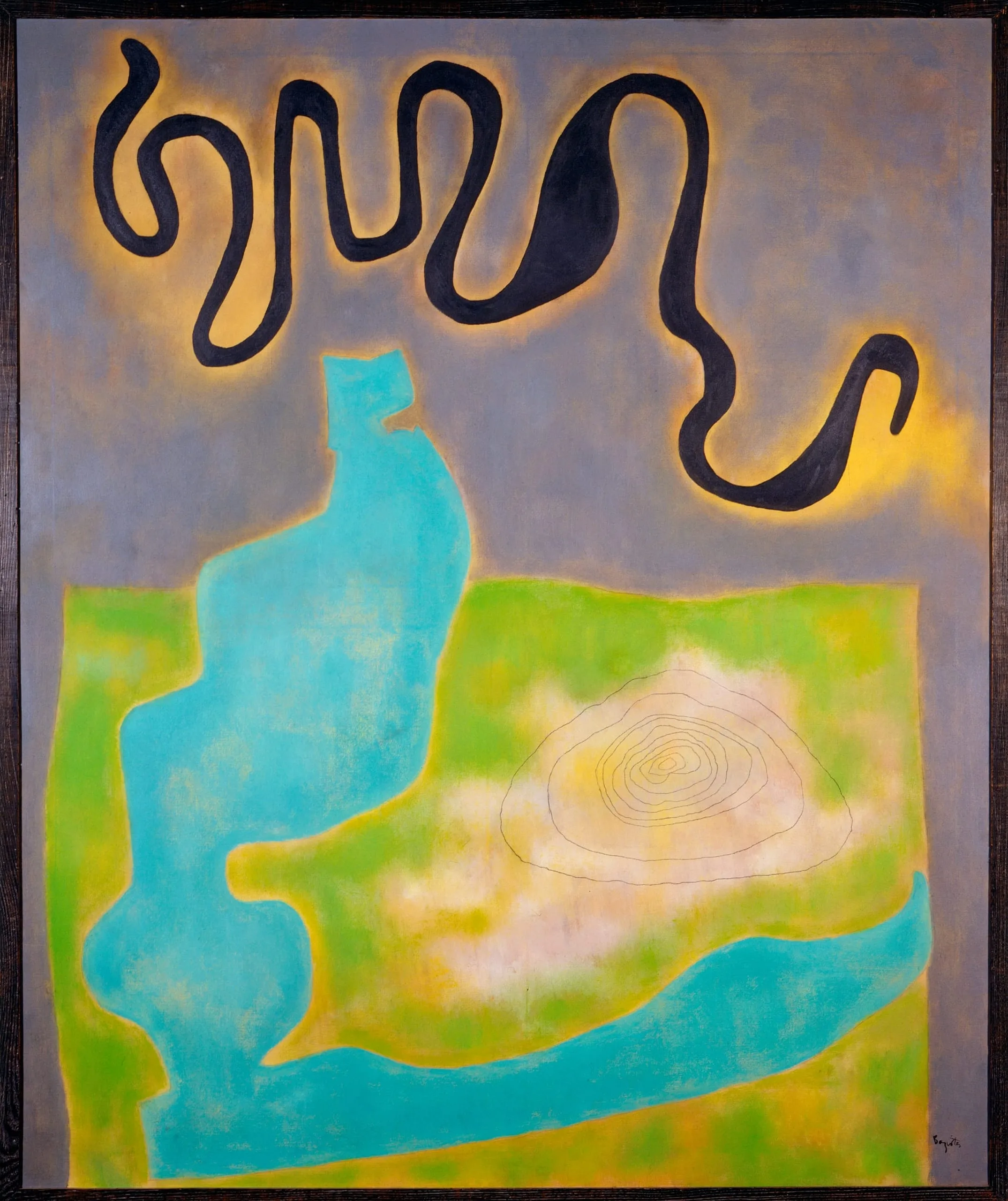 William Baziotes blended the textures of Abstract Expressionism with the biomorphic forms and calligraphic marks of Surrealism, resulting in paintings that teem with asymmetrical shapes, glowing colors, and references to nature. The titles of his paintings, influenced by visits to the Metropolitan Museum of Art and the American Museum of Natural History, often recall landscapes both actual and imagined. Though Baziotes never traveled outside the United States, the topographical forms and wriggling lines of Congo gesture to his vision of the African river.