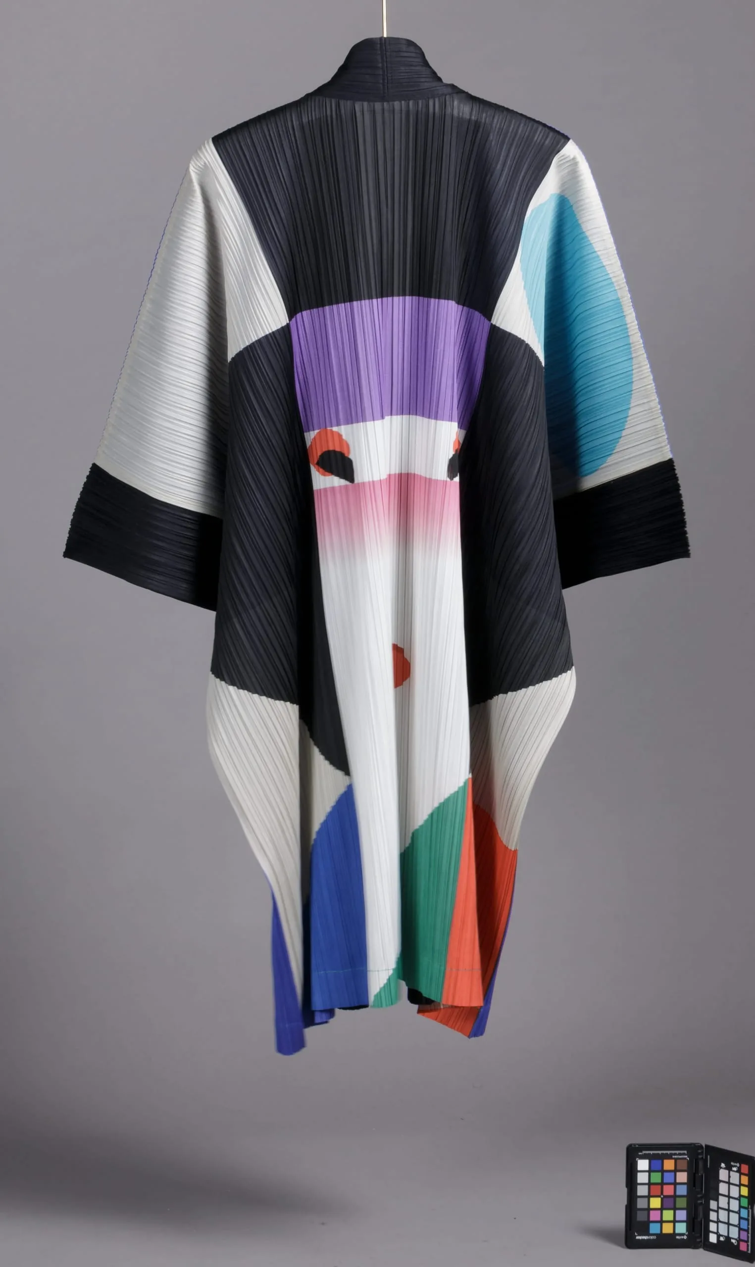 - Polyester knit, printed, heat- and pressure- set pleated