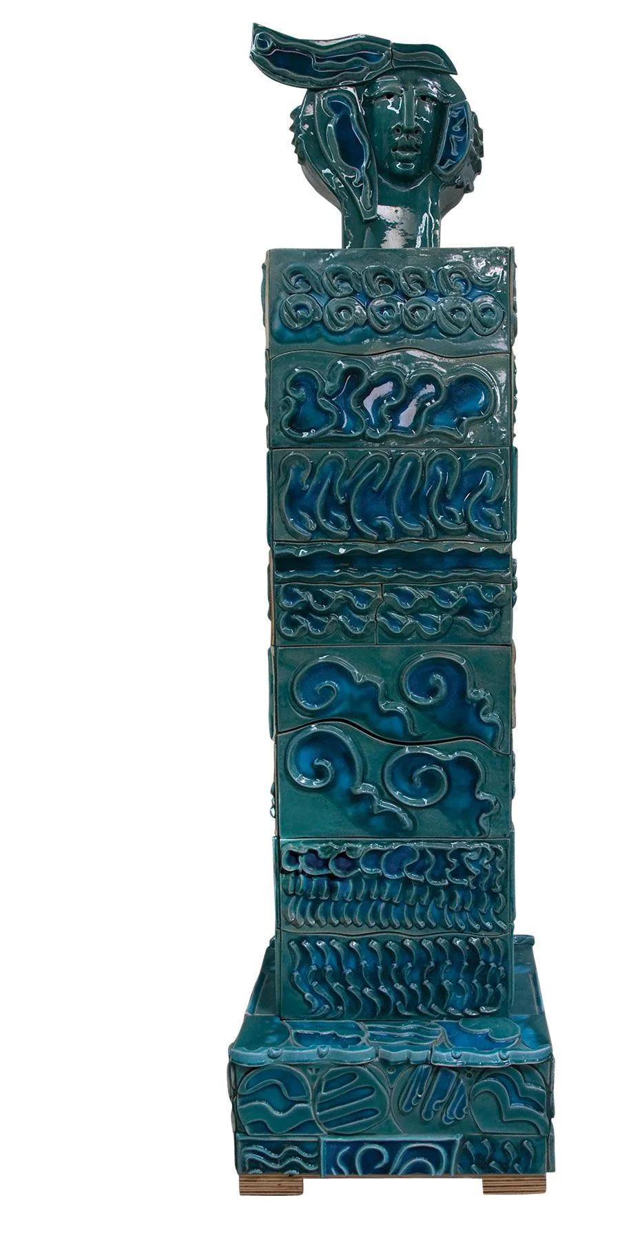 - Glazed stoneware, wood