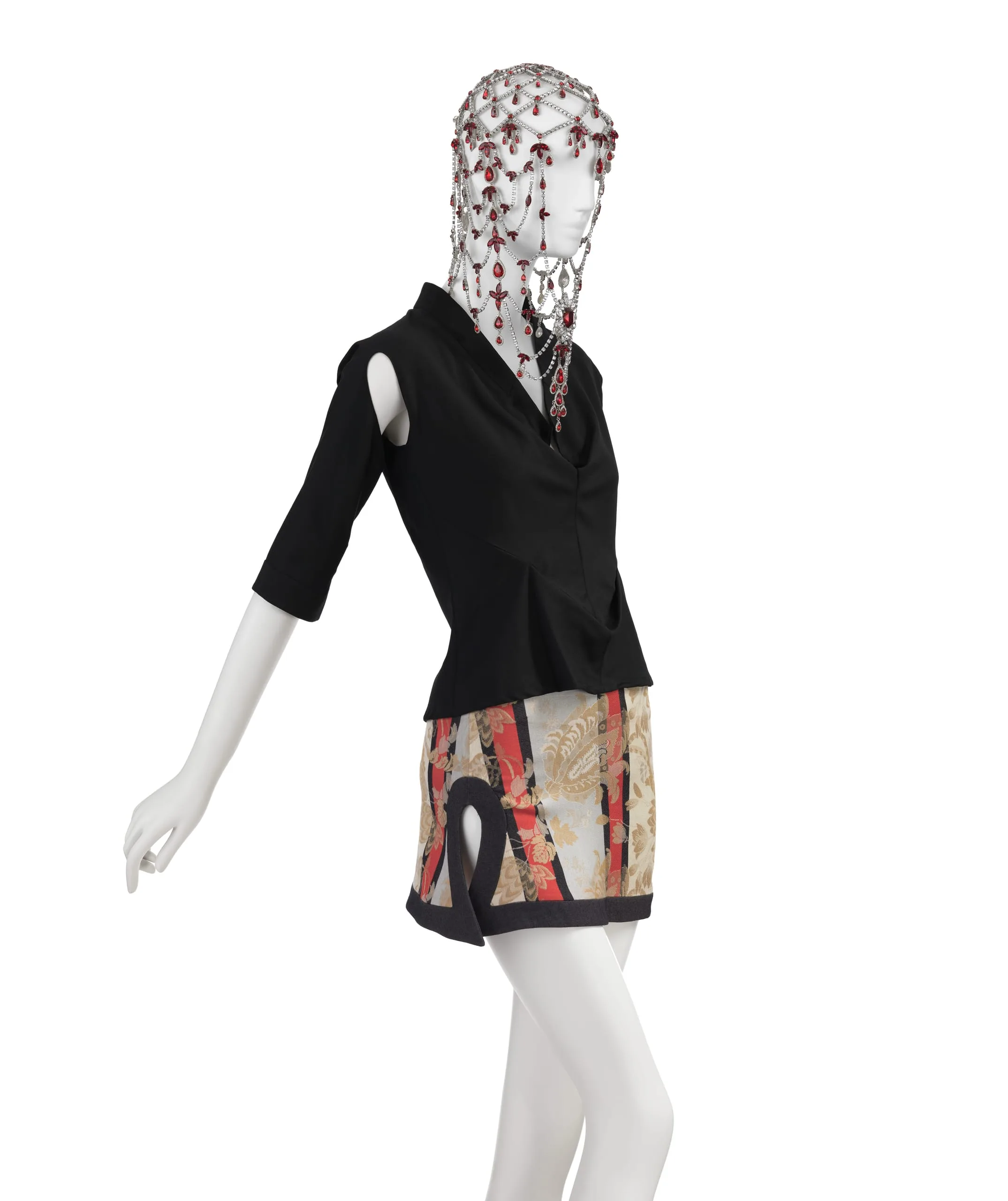 - Top: Wool twill; Skirt: silk and rayon twill weave with silk-warp patterning and rayon supplementary-weft patterning