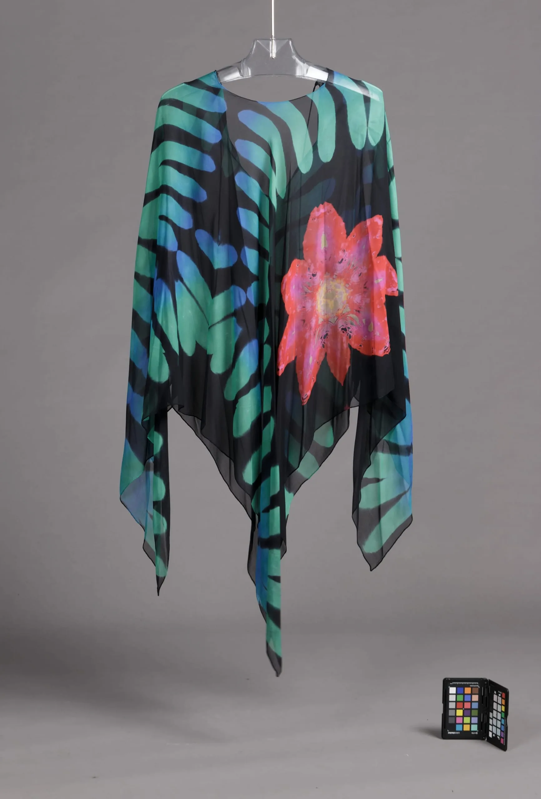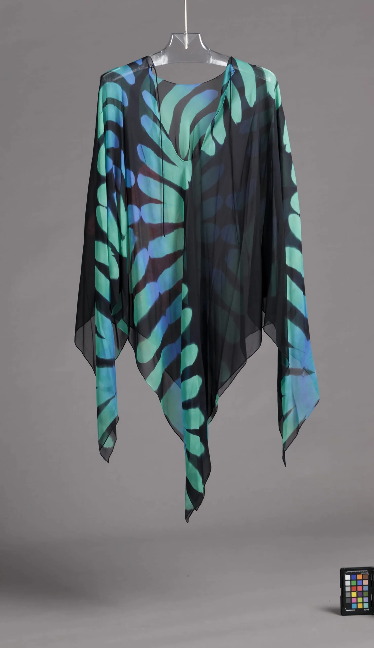 - Caftan: Silk plain weave (chiffon), tie-resist dyed;