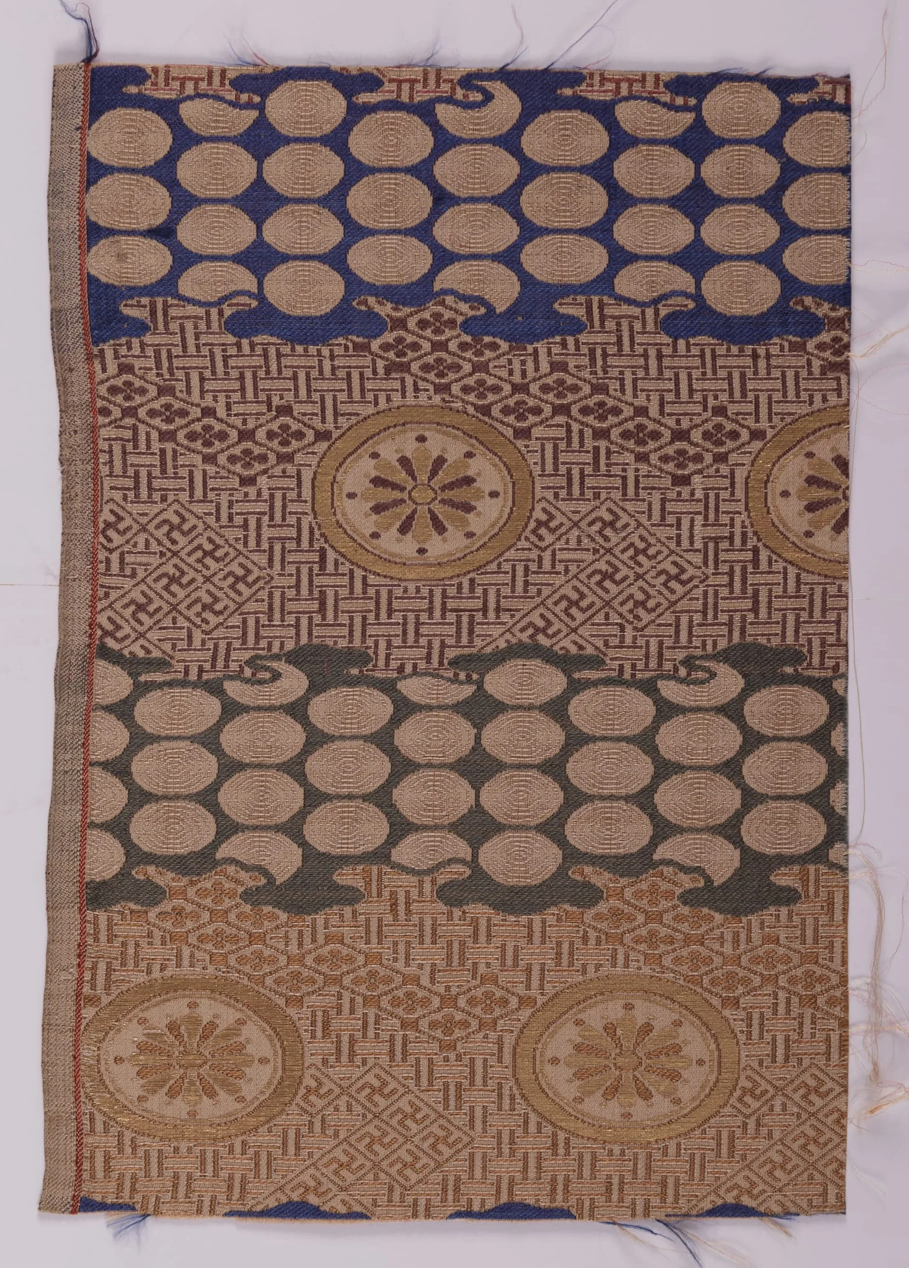 - Silk twill with silk and metallic-thread supplementary-weft patterning bound in twill (lampas)