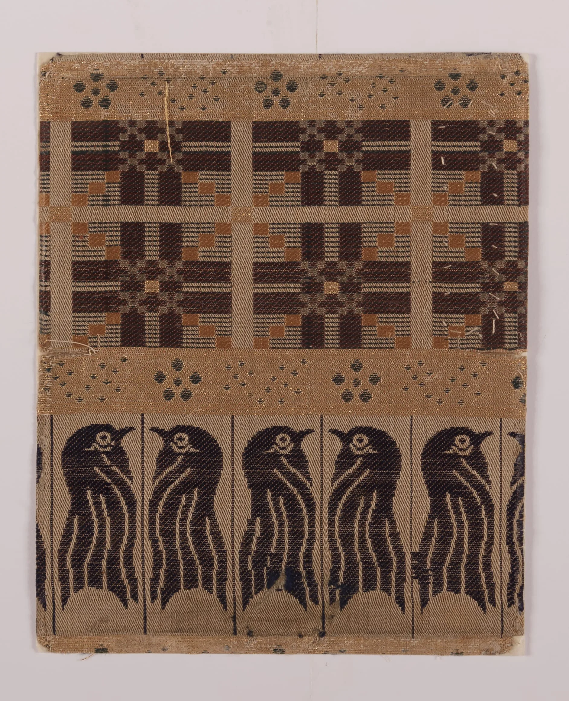 - Silk twill with silk and gilt paper supplementary-weft patterning bound in twill (lampas)
