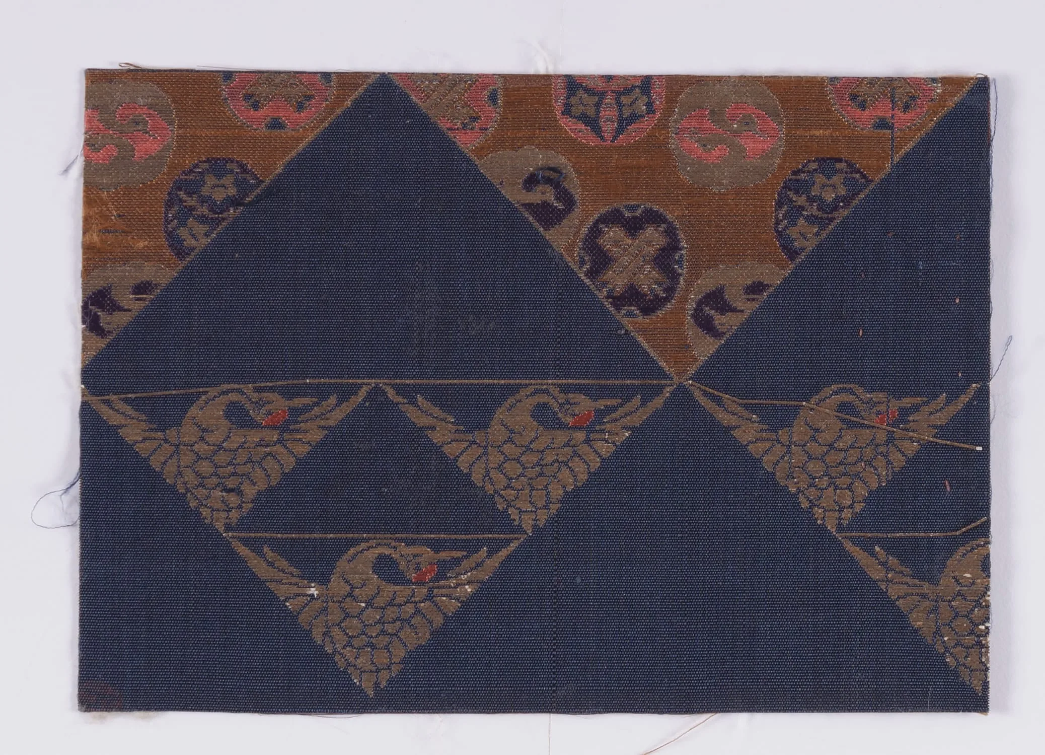 - Silk plain weave with silk and gilt paper supplementary-weft patterning bound in plain weave (lampas)