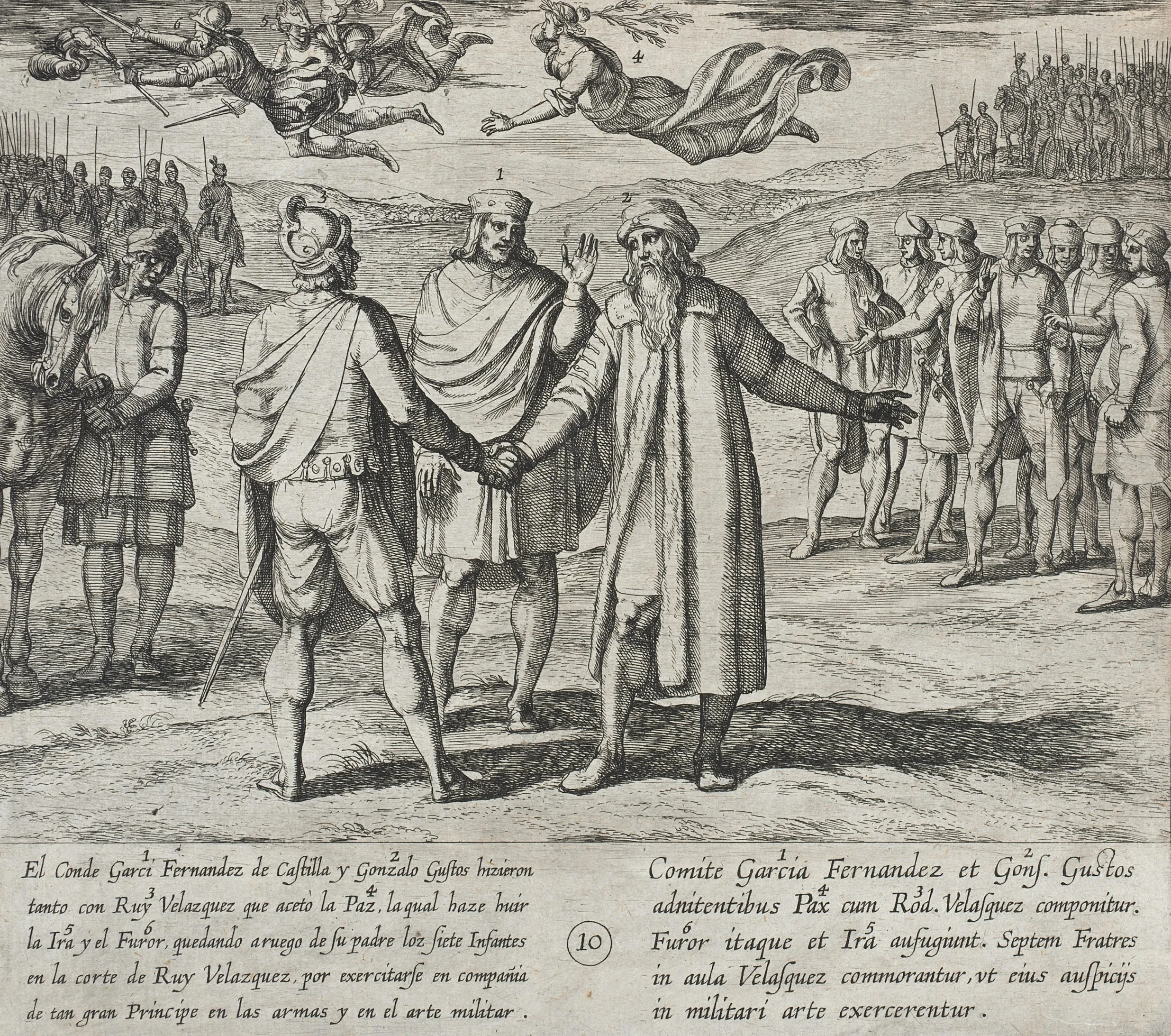- Garci Fernandez and Gonzalo Gustos, Father of the Infantes, Persuade Ruy Velazquez to Make Peace