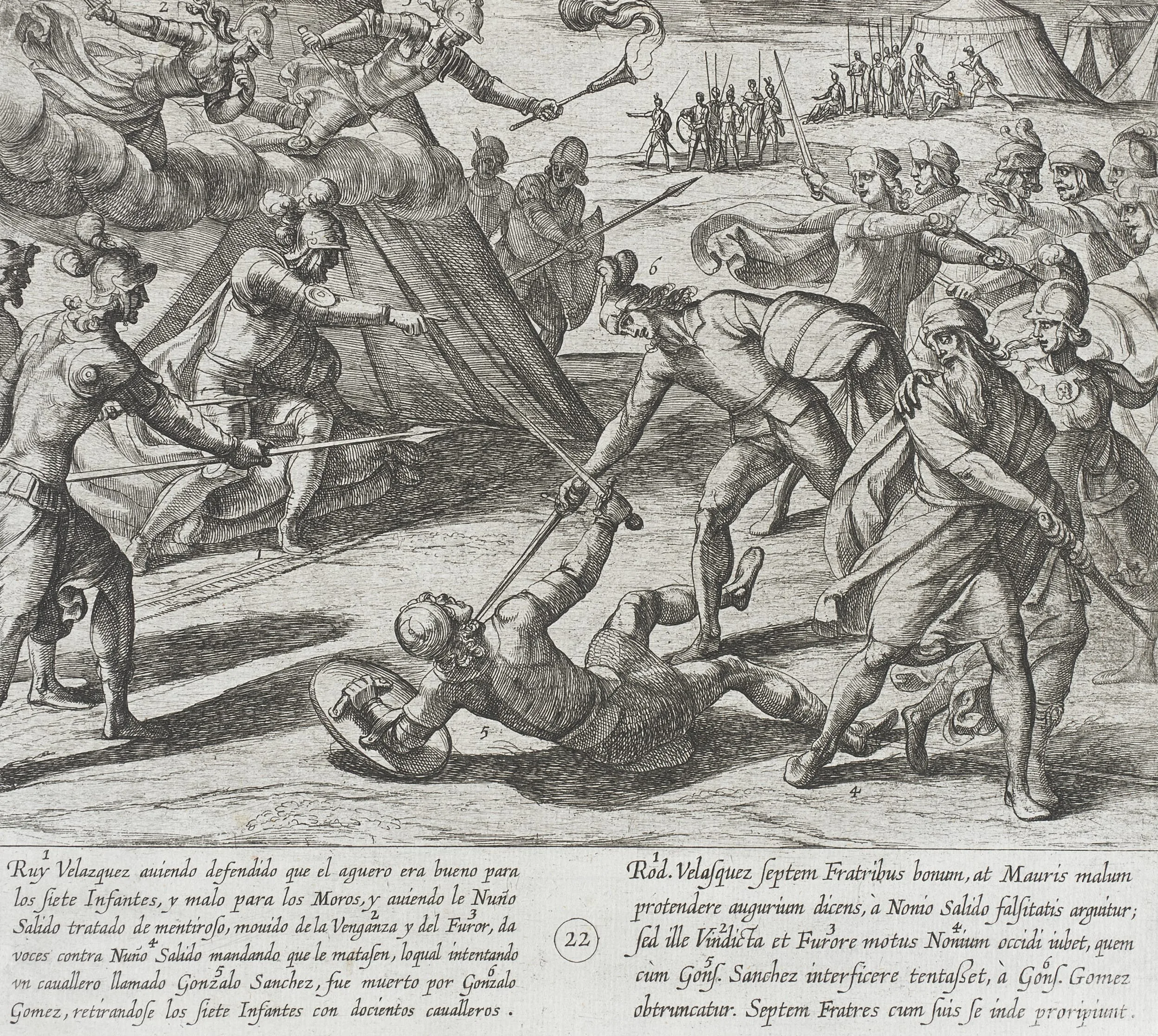- Ruy Velazquez Orders the Death of Nuño Salido, Gonzalez Gomez Comes to His Aid and Kills the Knight Gonzalo Sanchez