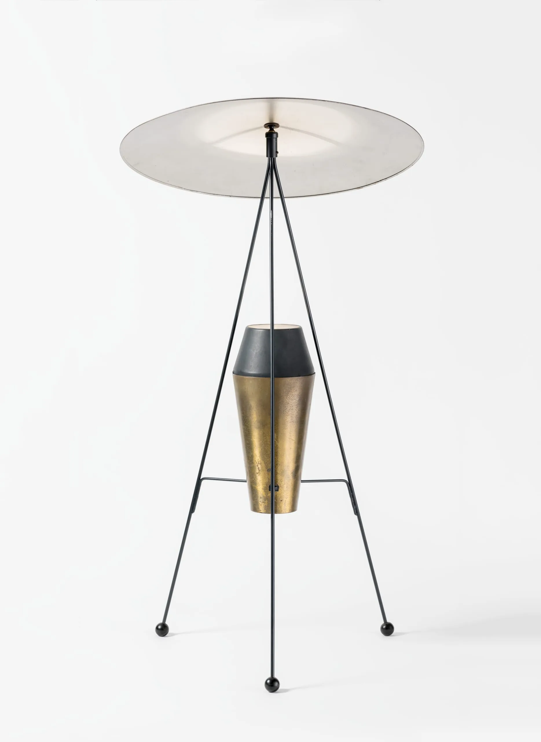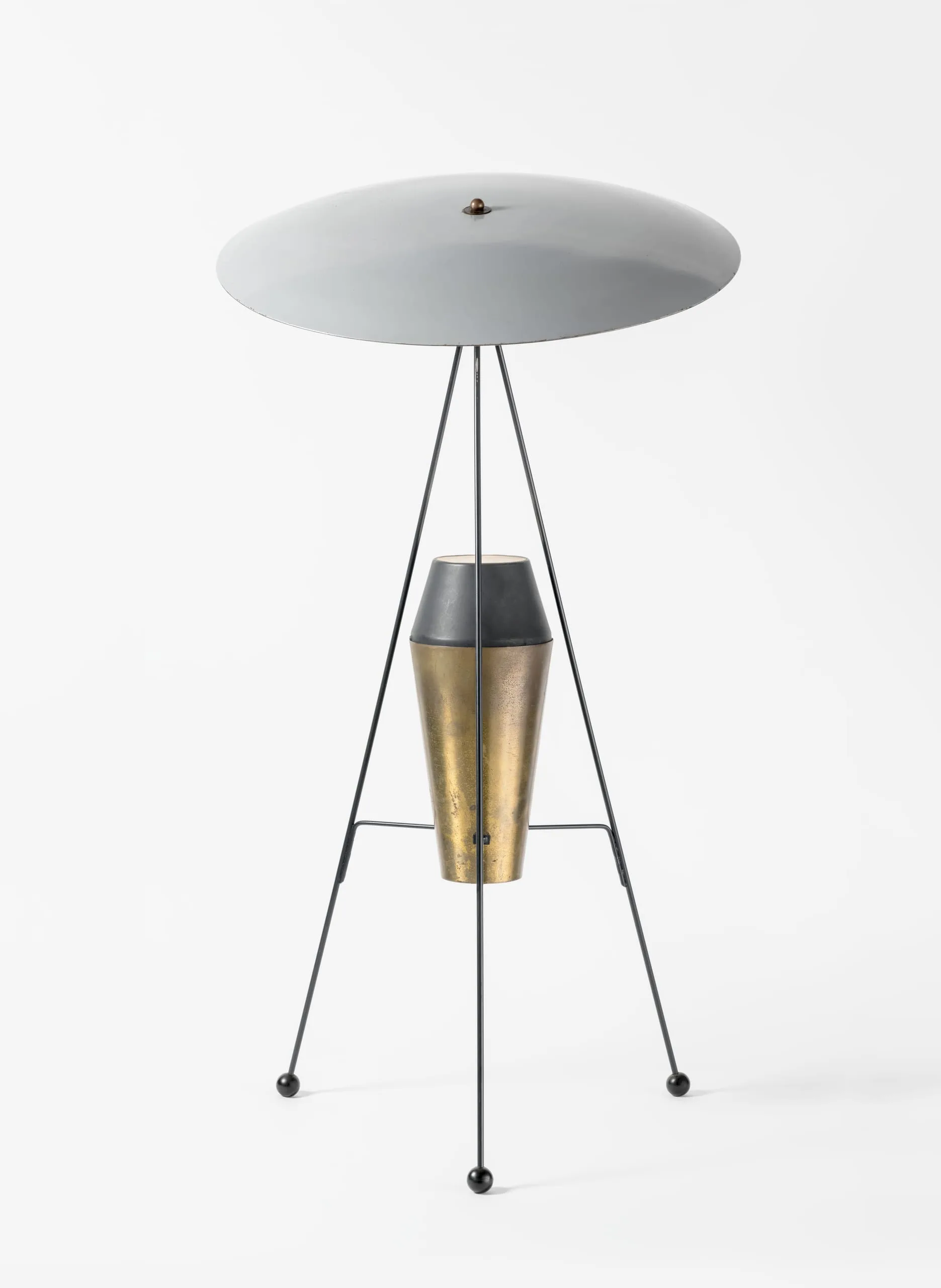 Spurred by architect Marcel Breuer’s comment that he could not find a single well-designed floor or table lamp for his Exhibition House at the Museum of Modern Art in 1949, MoMA sponsored a lighting design competition the following year, with works by fifteen of the winners included in a "New Lamps" exhibition from March to June, 1951. In collaboration with MoMA, the manufacturer Yasha Heifetz co-sponsored this national competition, and then put ten of the prize-winning lamps into production. A.W. and Marion Geller’s entry was one of the lamps that were then sold at progressive design stores throughout the country.