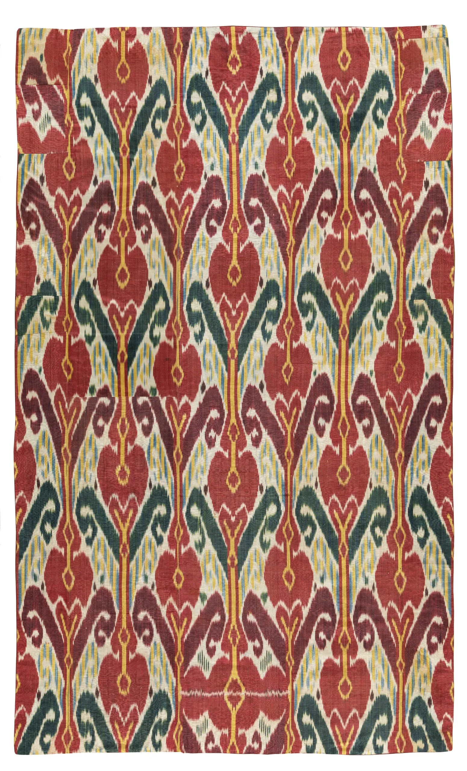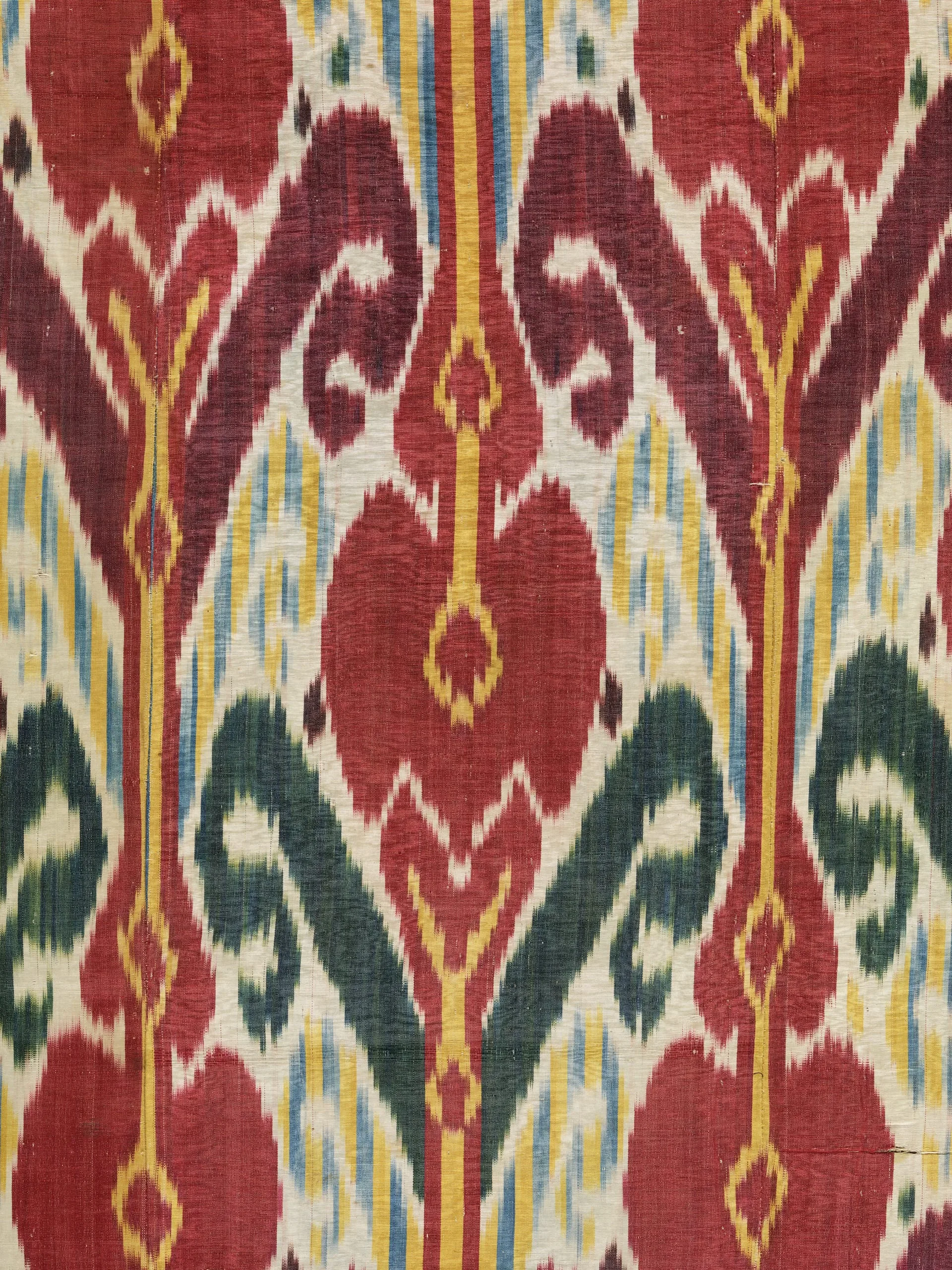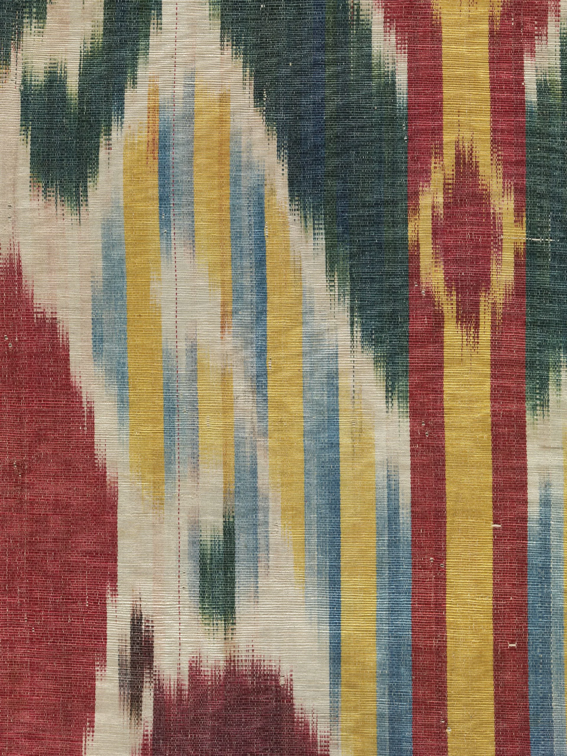 - Silk and cotton plain weave with tie-resist-dyed warp (ikat) (adras), moiré finish