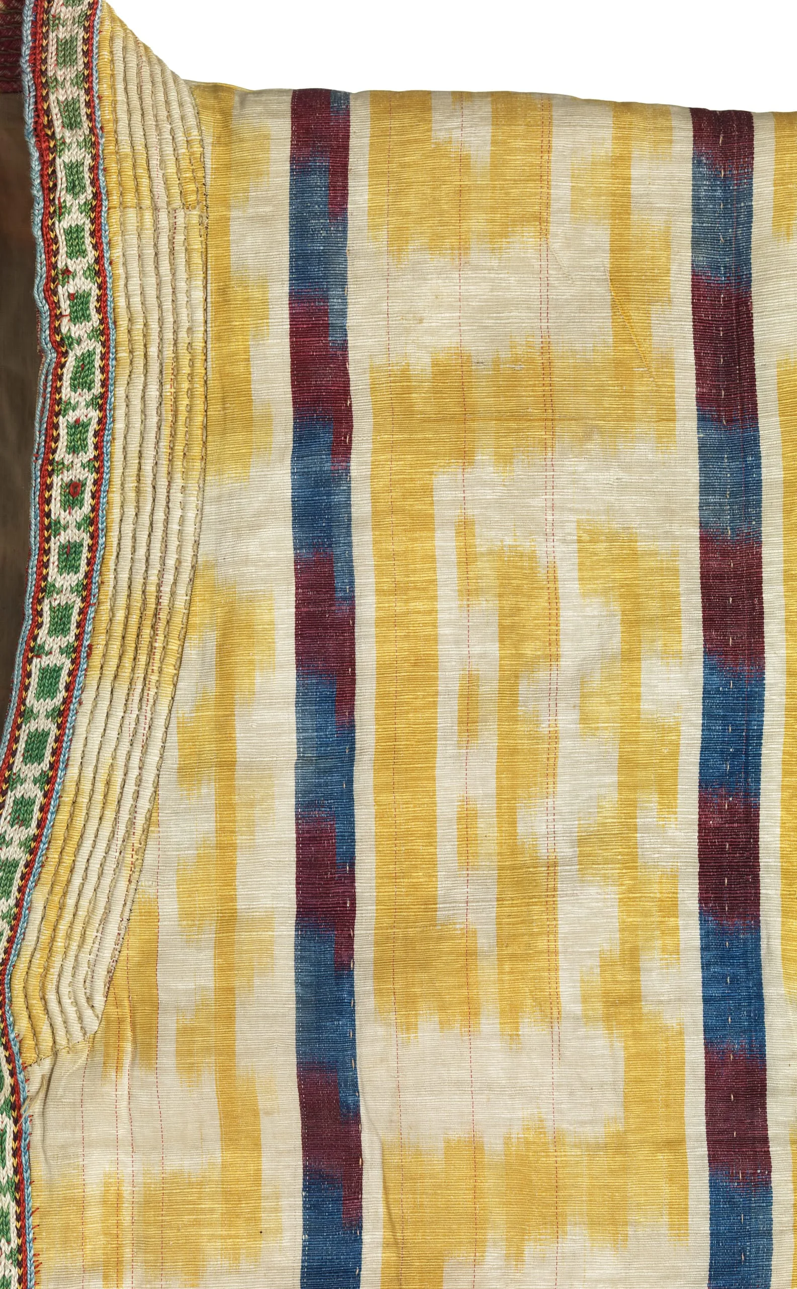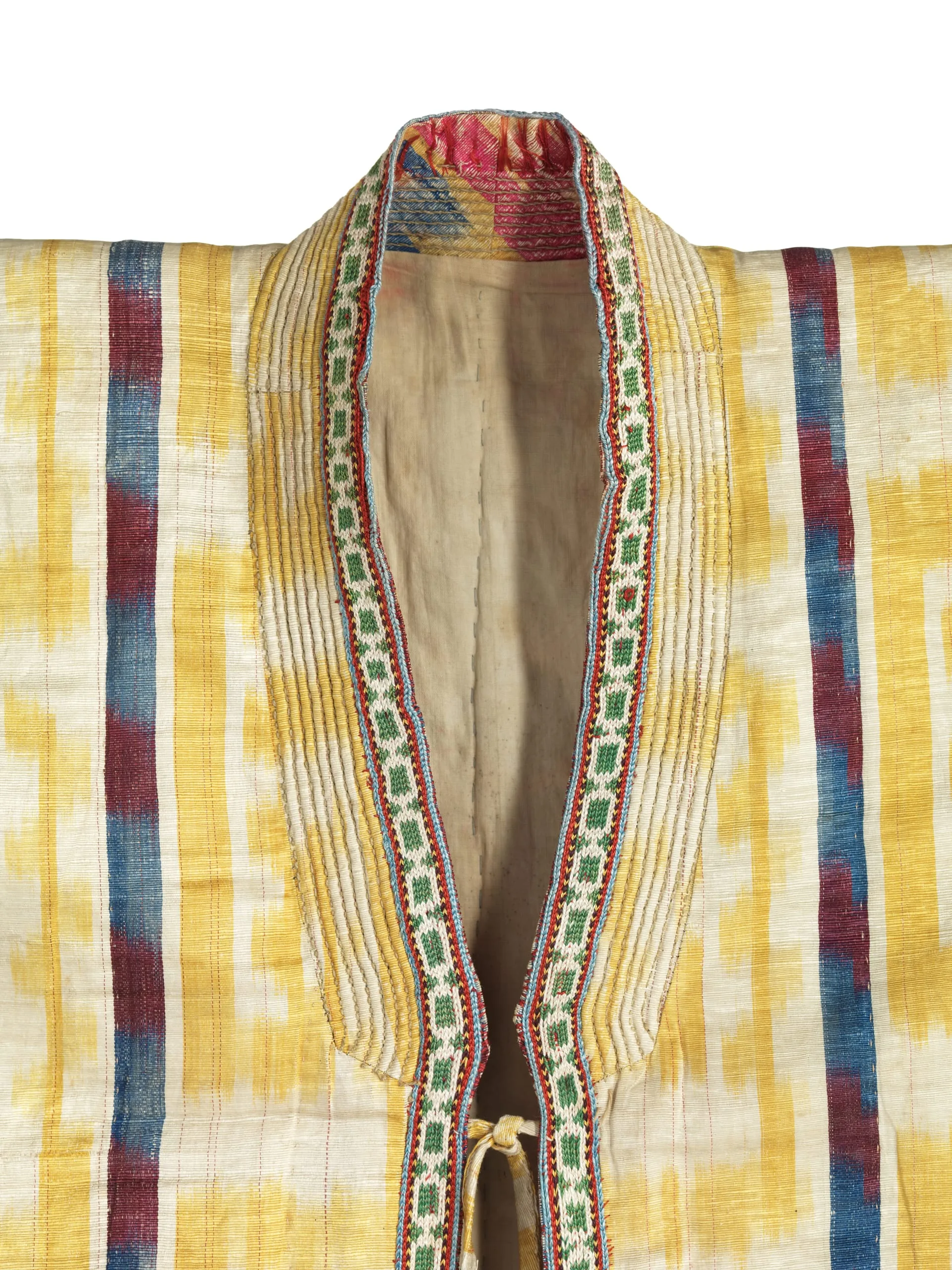 - Silk and cotton plain weave with tie-resist-dyed warp (ikat) (adras), quilted, and silk; Lining: cotton plain weave and silk and cotton plain weave with tie-resist-dyed warp (ikat) (adras)