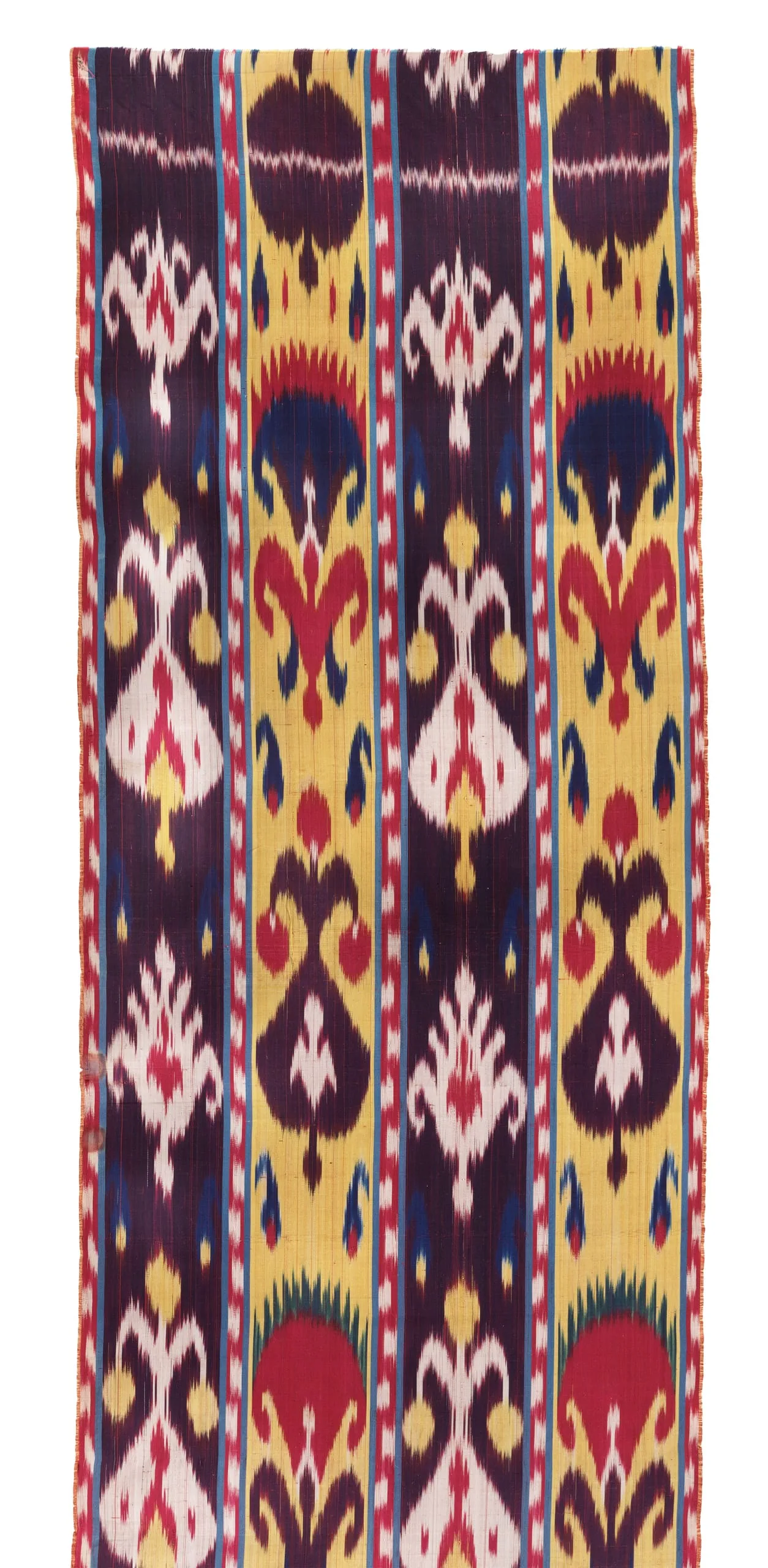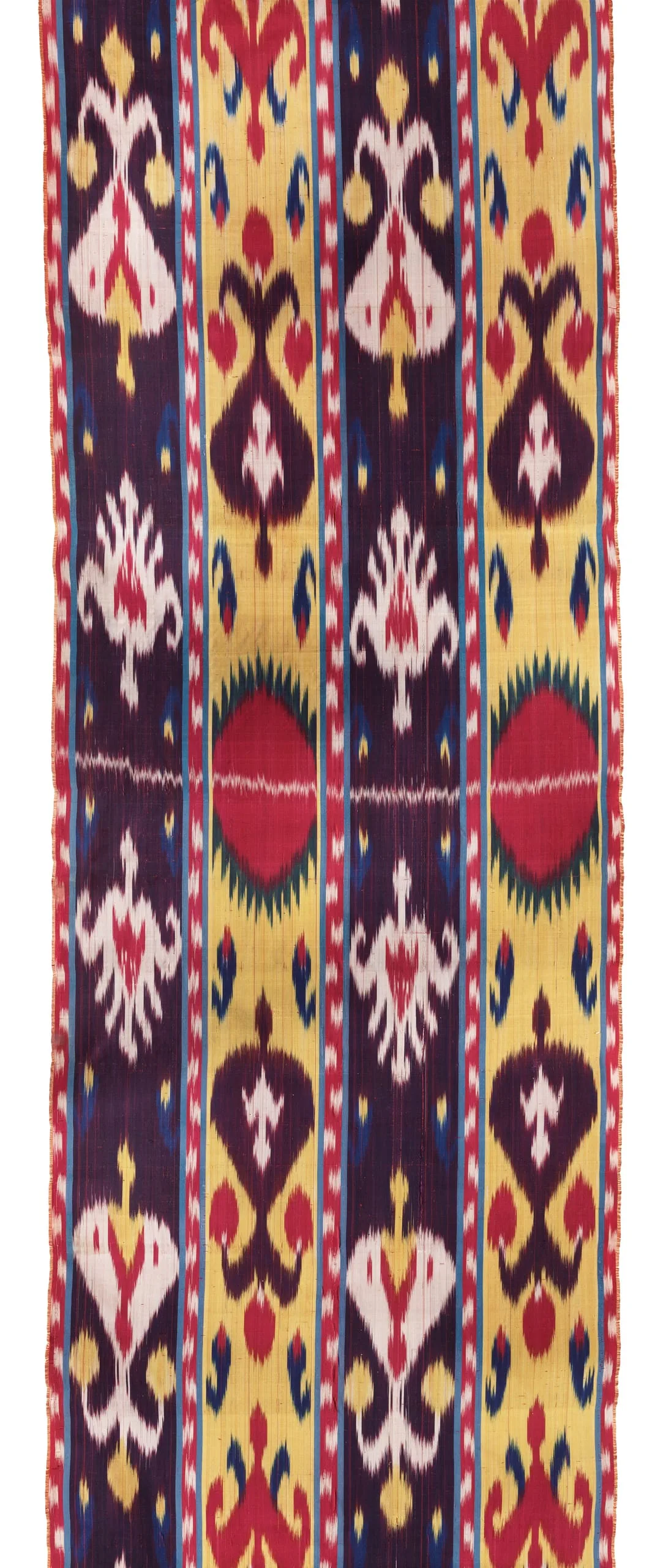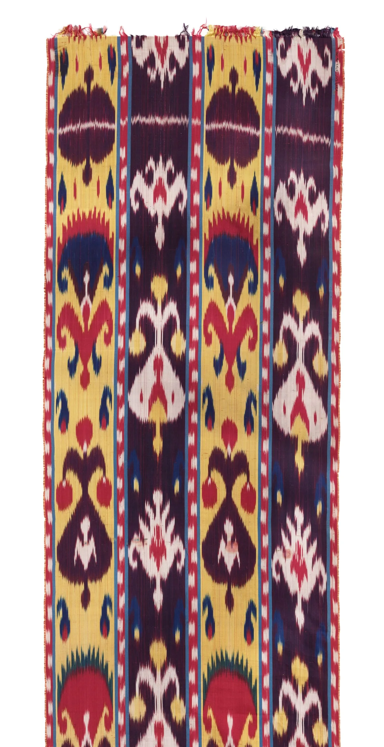 - Silk plain weave with tie-resist-dyed warp (ikat) (shahi)