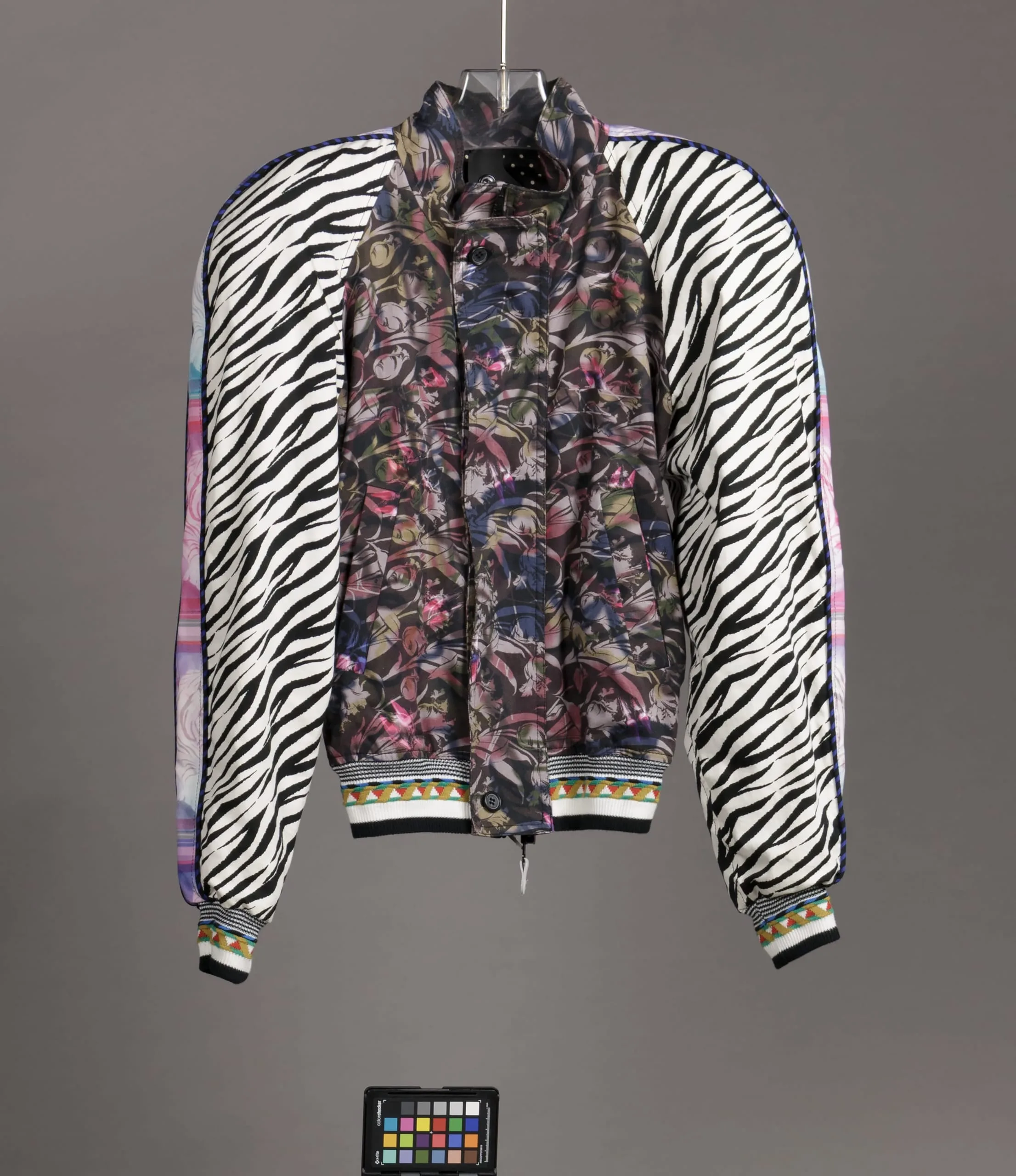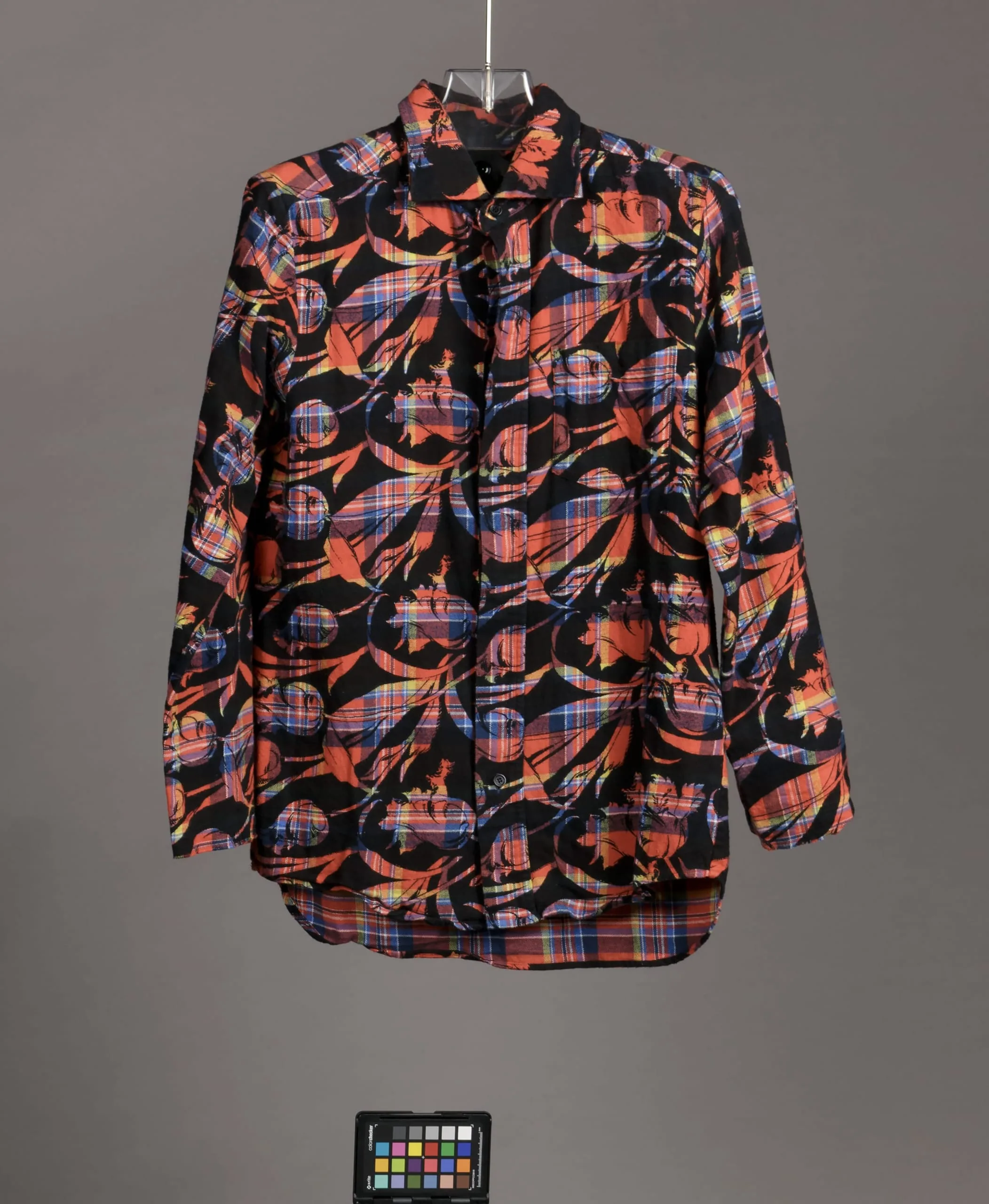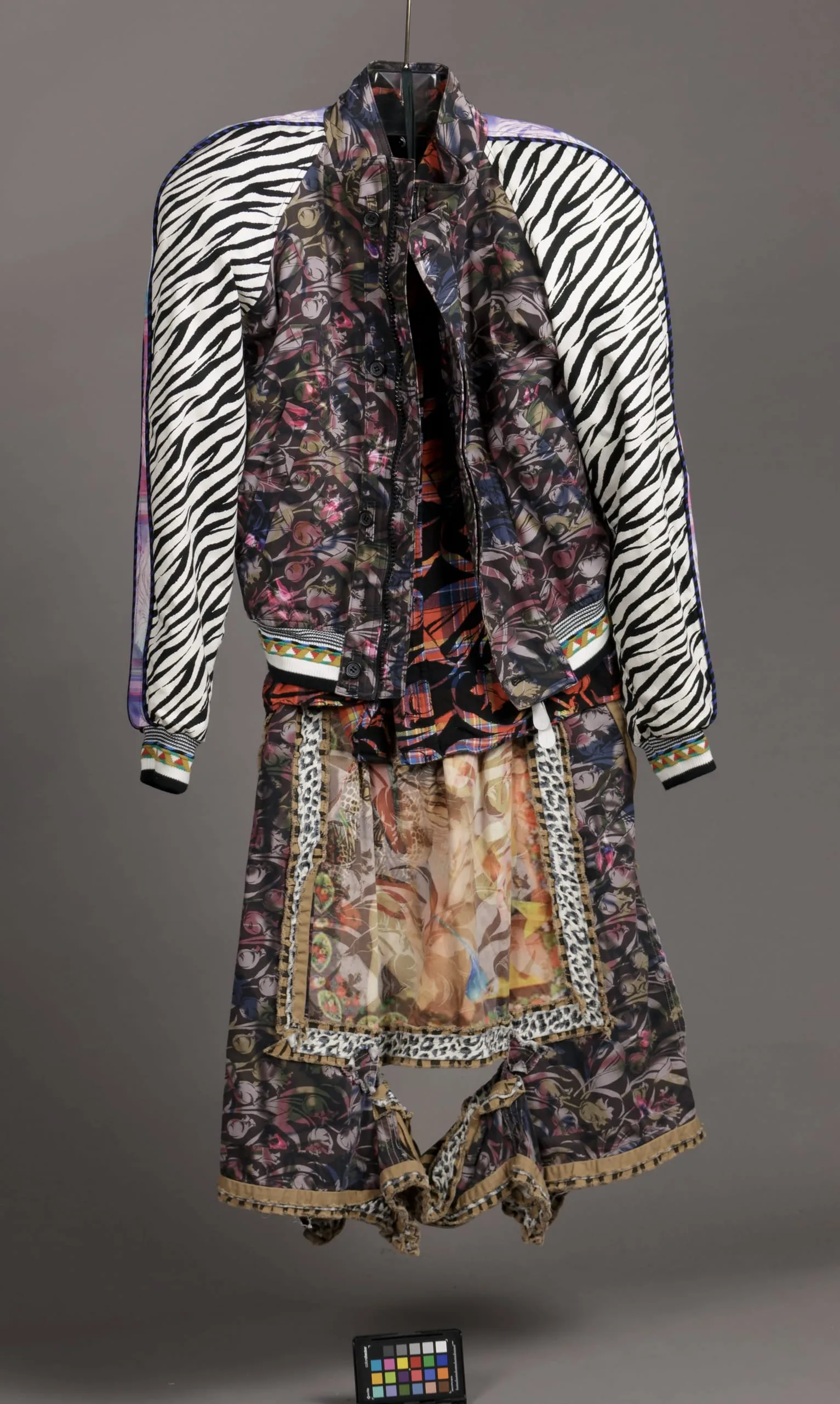 - Jacket: cotton plain weave, printed; Shirt: cotton plain weave, printed; Pants: cotton plain weave, printed; Sunshield: polyamide powder, 3D printed (Nylon); Shoes: polyester