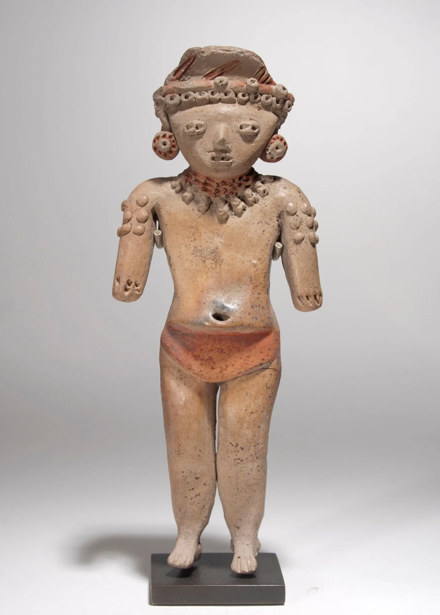 - Standing Female Figure with Elaborate Headgear and Necklace