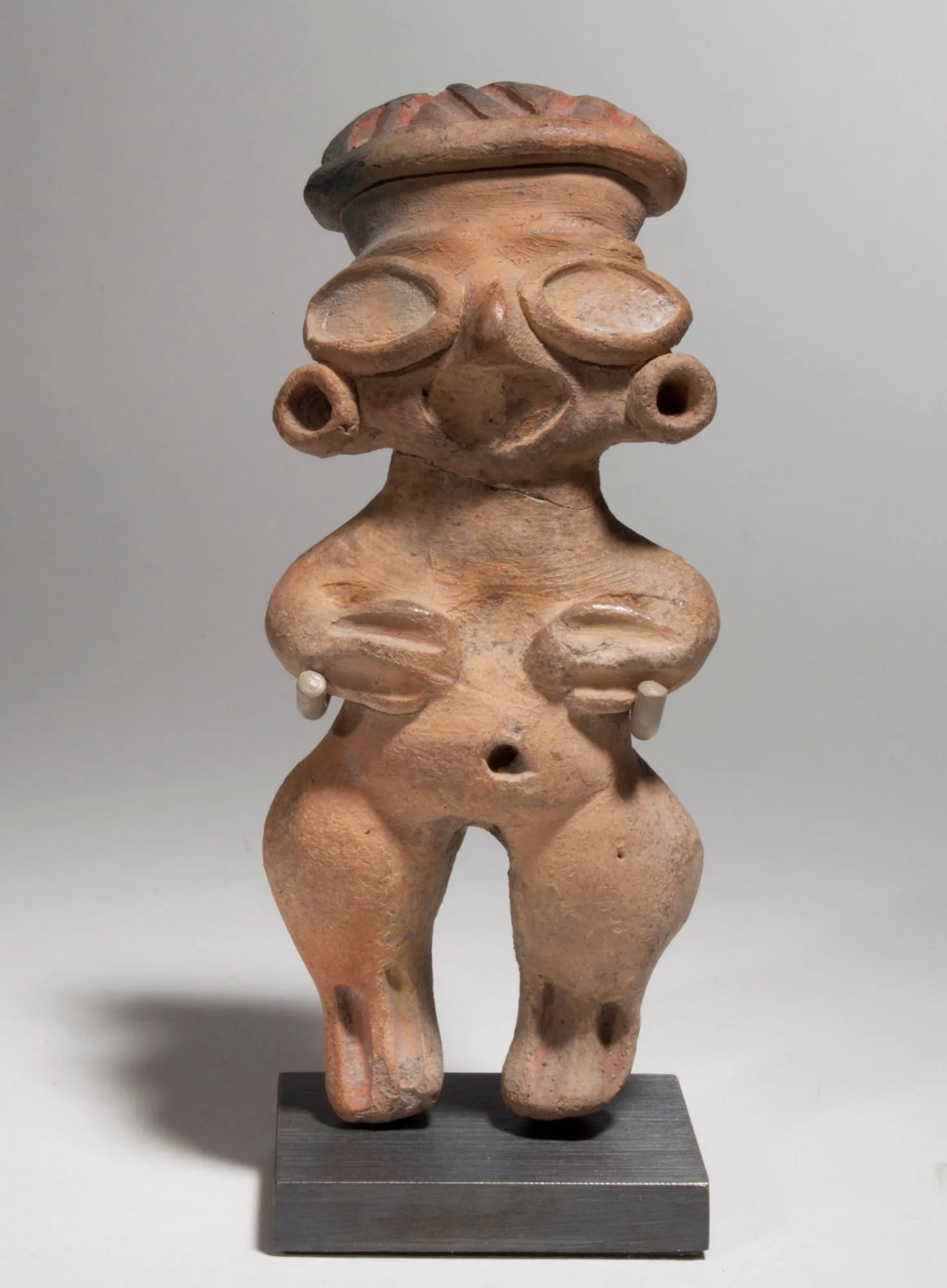 - Standing Female Figure with Large Almond Eyes and Hands on Chest (Type K)