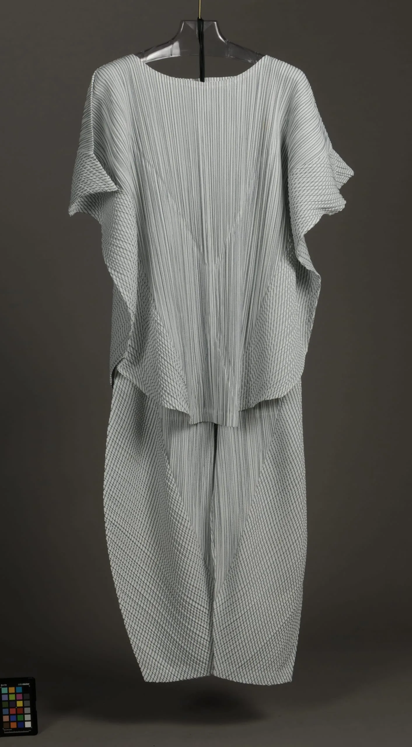 - Polyester/cotton knit, heat- and pressure- set pleated
