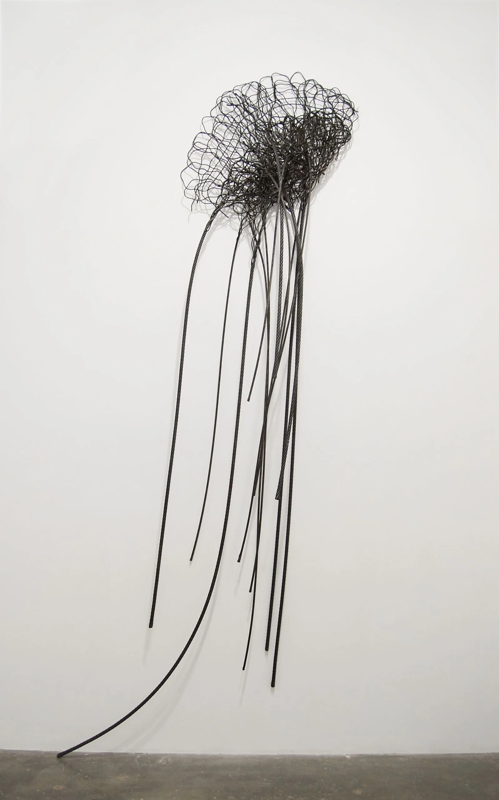 Already in the early 1970s Hassinger was aware of and sensitive to environmental concerns, which have grown exponentially in the intervening decades. Untitled (Sea Anemone) simultaneously suggests the delicate beauty of the sea anemone and alludes to both its predatory nature (when touched, its tentacles fire a harpoon-like filament into the victim to inject a paralyzing neurotoxin) and the precariousness of its existence in coastal tropical waters now threatened by warming ocean temperatures and chemical runoff from industry and farming. Visually delicate and frilly, Untitled at the same time is made from a strong and tough material.