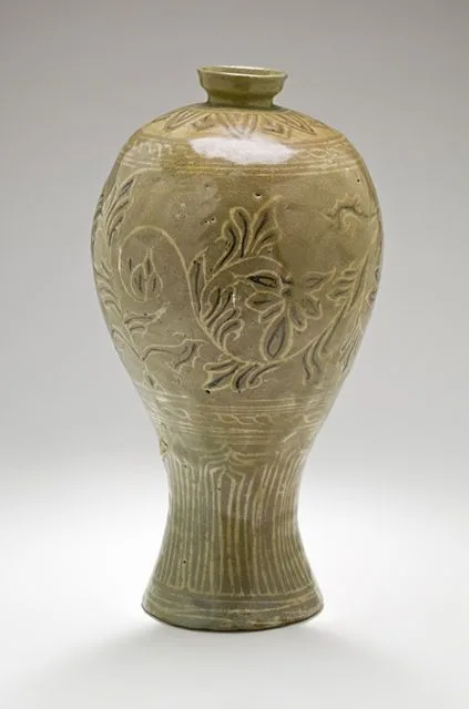 - Buncheong ware; Wheel-thrown stoneware with incised and slip-filled decoration and green glaze
