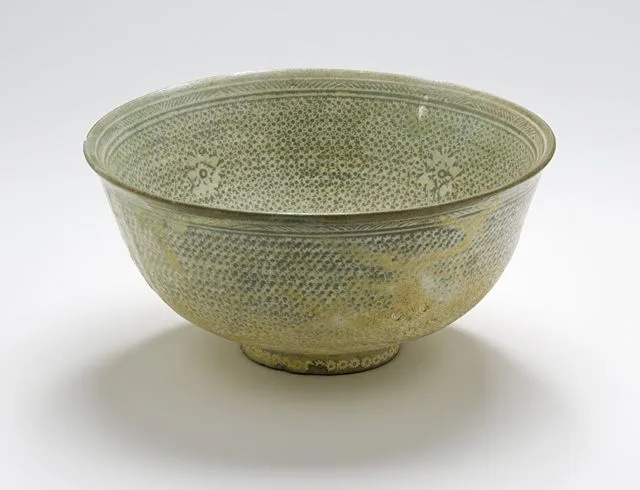 - Buncheong ware; Wheel-thrown stoneware with stamped, incised, and slip-filled decoration and pale green glaze