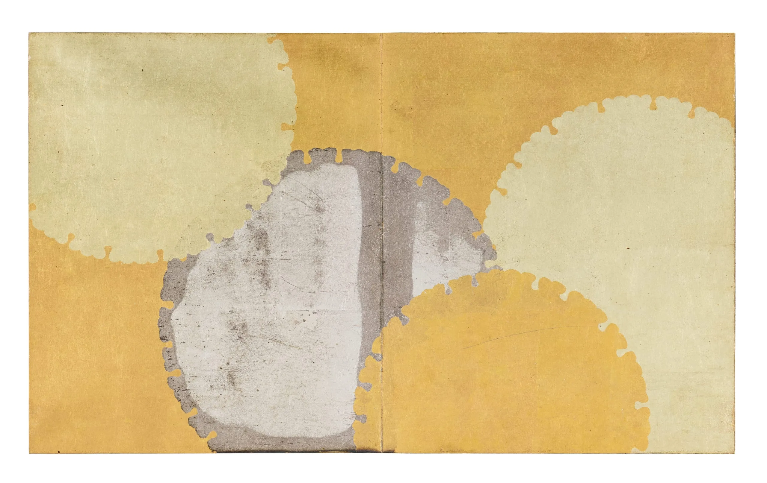 - Album; ink, color and gold on silk; cover: silk twill with gilt-paper supplementary-weft patterning; cloisonne enamel corners