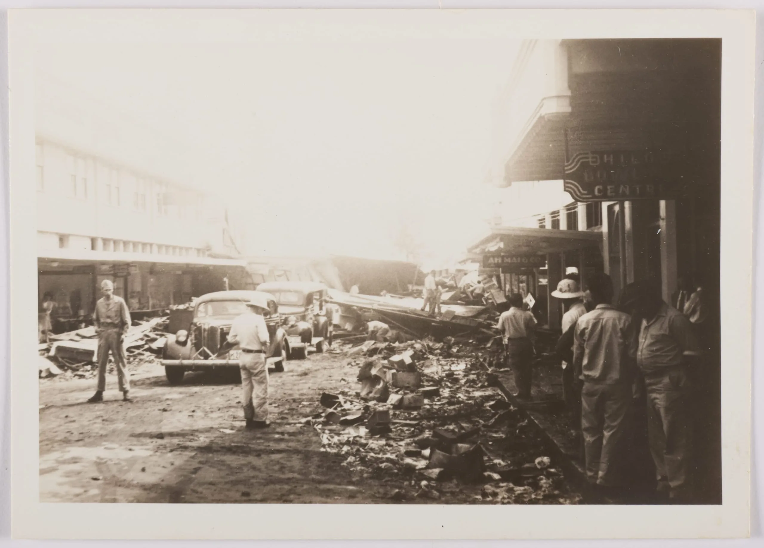 People by Wreckage in Street