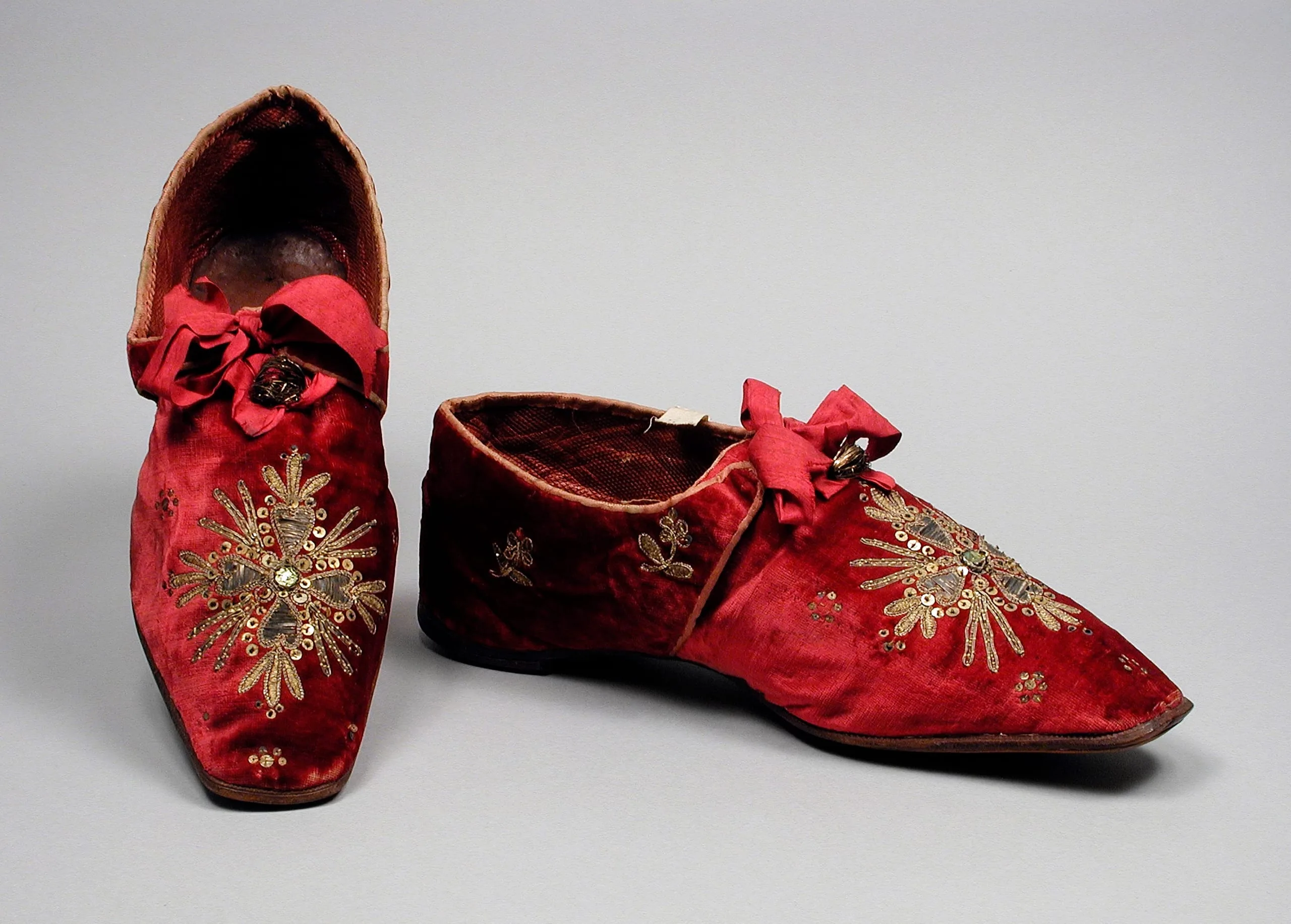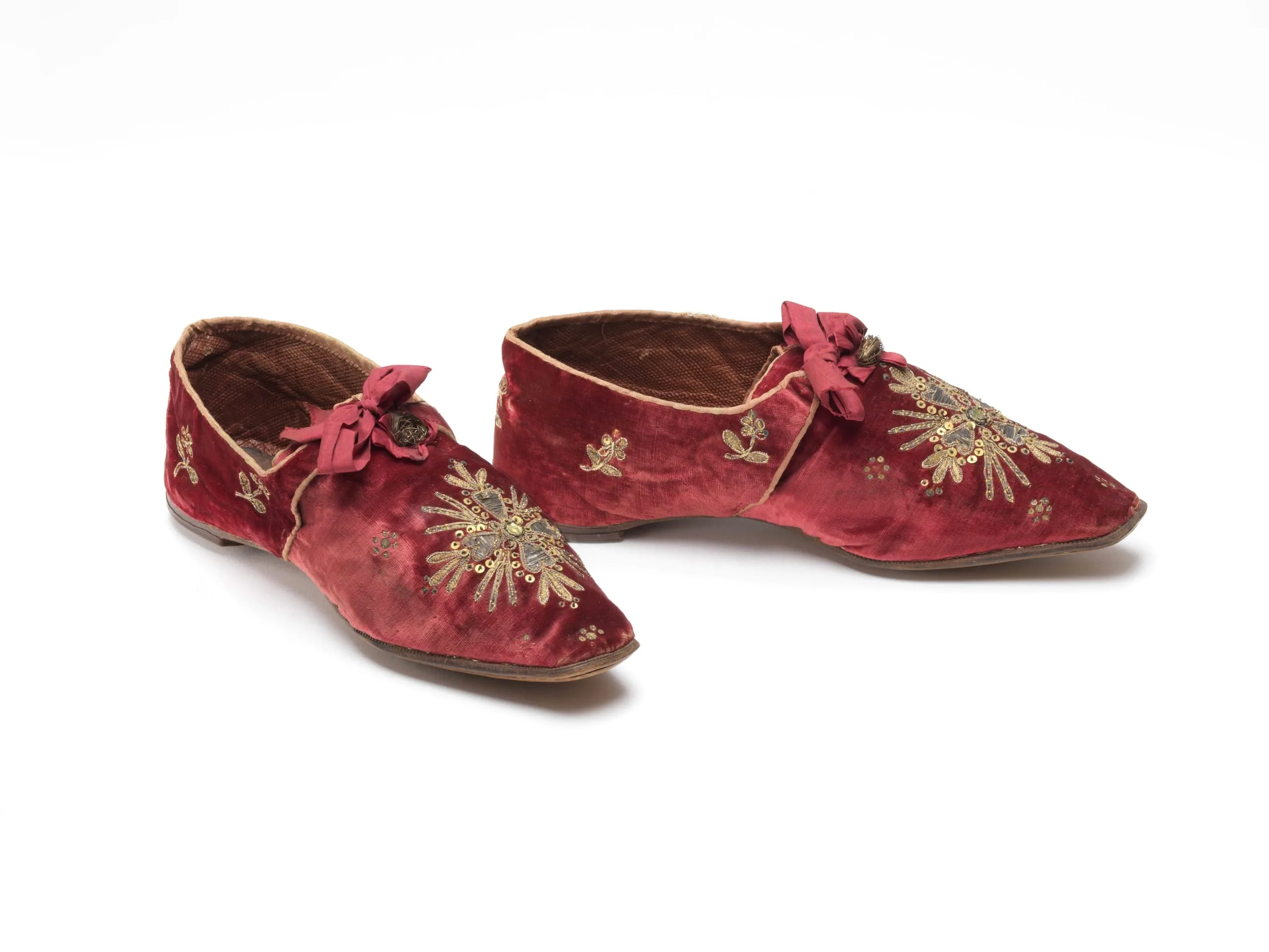- Silk velvet with metallic-thread embroidery, sequins, and leather