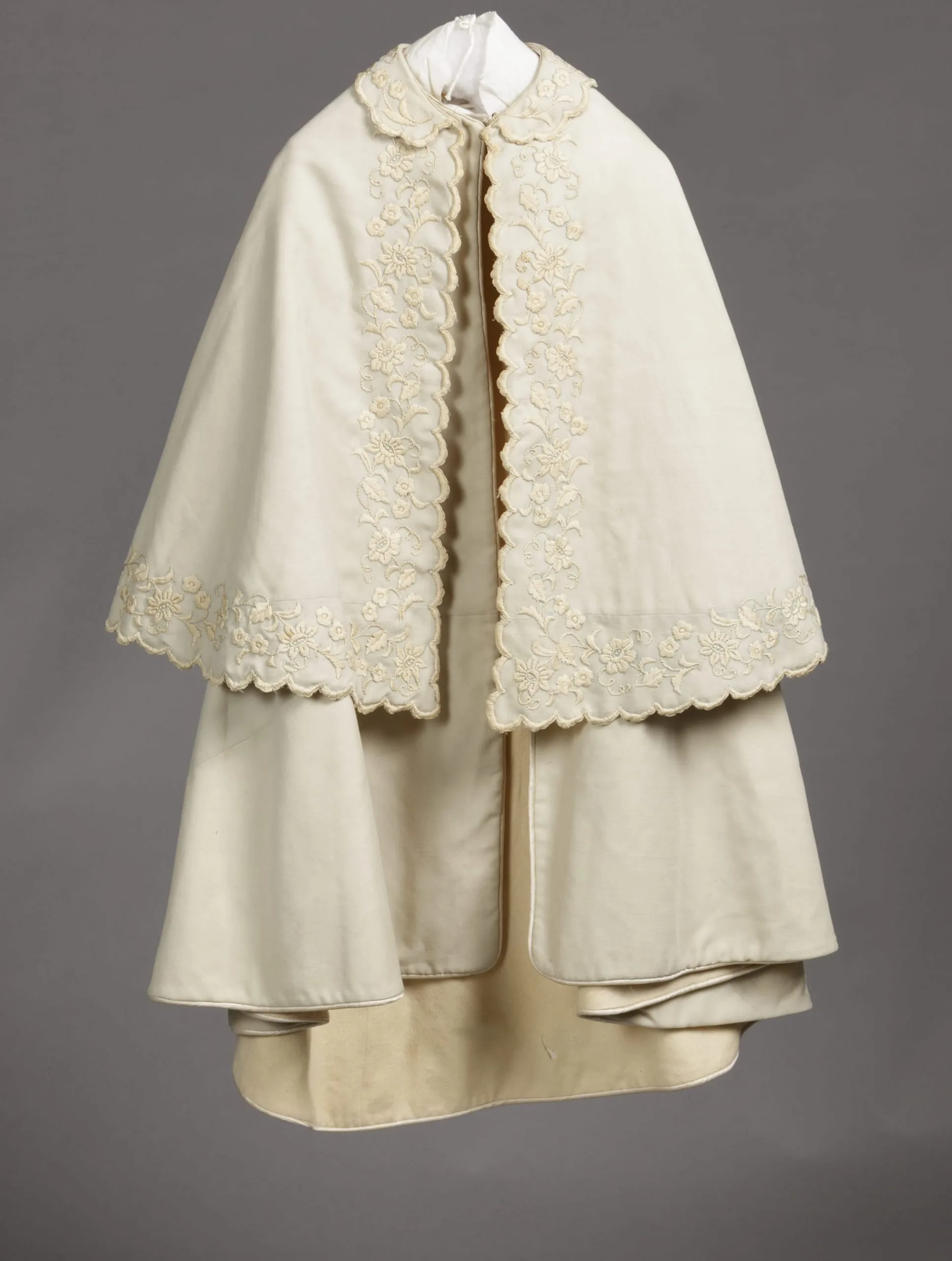 - Wool twill with silk satin, and silk embroidery
