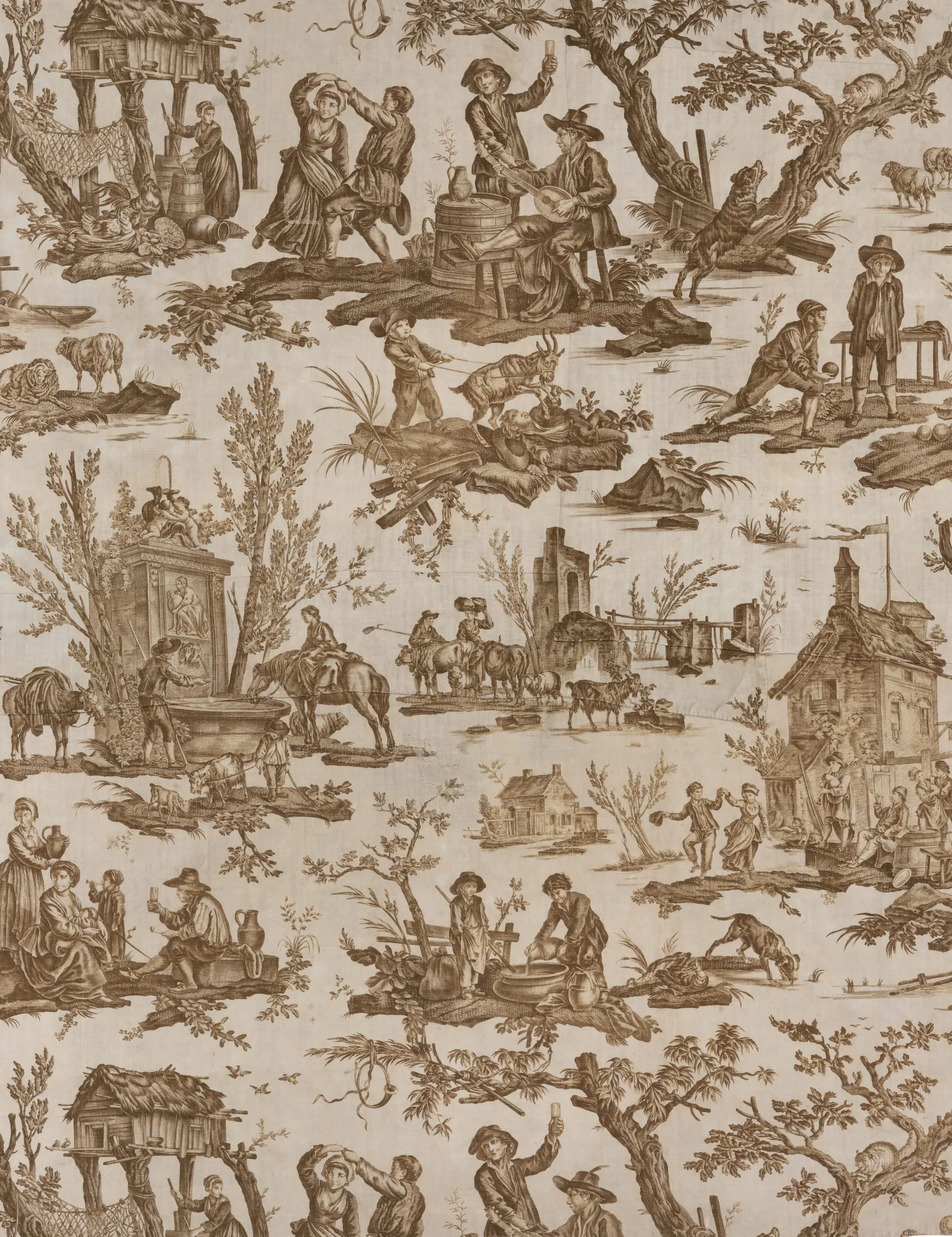 - Cotton plain weave, copper-plate printed, mordant-dyed