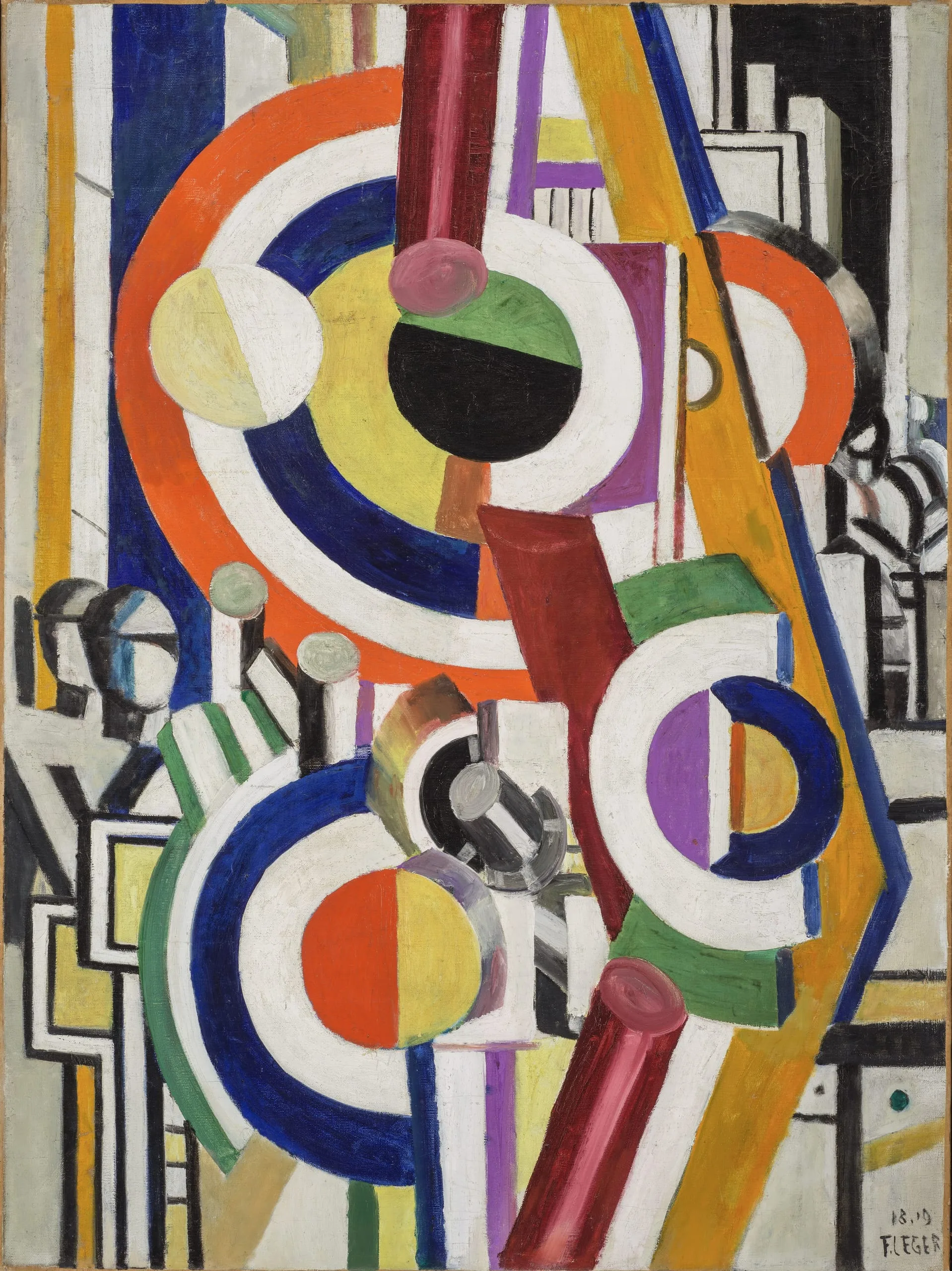 More than one hundred years ago, Fernand Léger’s painting demonstrated a utopia (or nightmare) some still imagine today: the integration of people with technology. The figures on the lower left and middle right are barely distinguishable either from each other or from the machinery of wheels and levers. The painting’s foreground and background merge to demonstrate the codependence of humans and their tools, with Léger’s color scheme communicating optimism and energy. But the disjointed and fragmented forms equally introduce disquiet into the scene, evoking the violence of World War I, which had just ended in November 1918.