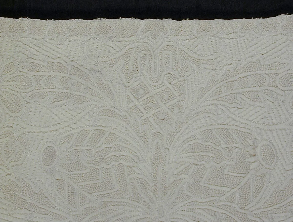 - Cotton plain weave with cotton embroidery and cotton corded quilting