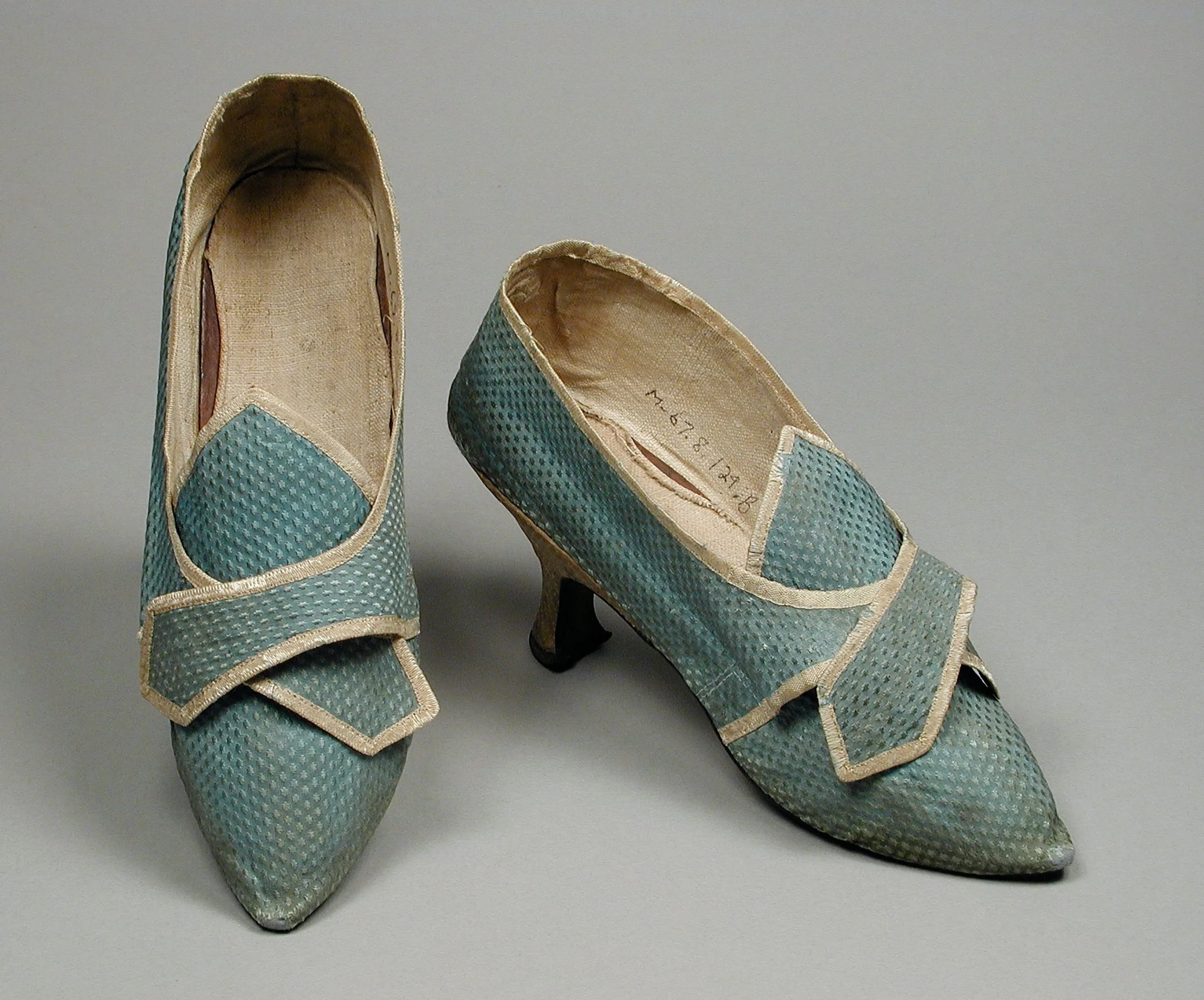 - Silk damask, silk plain weave, and leather