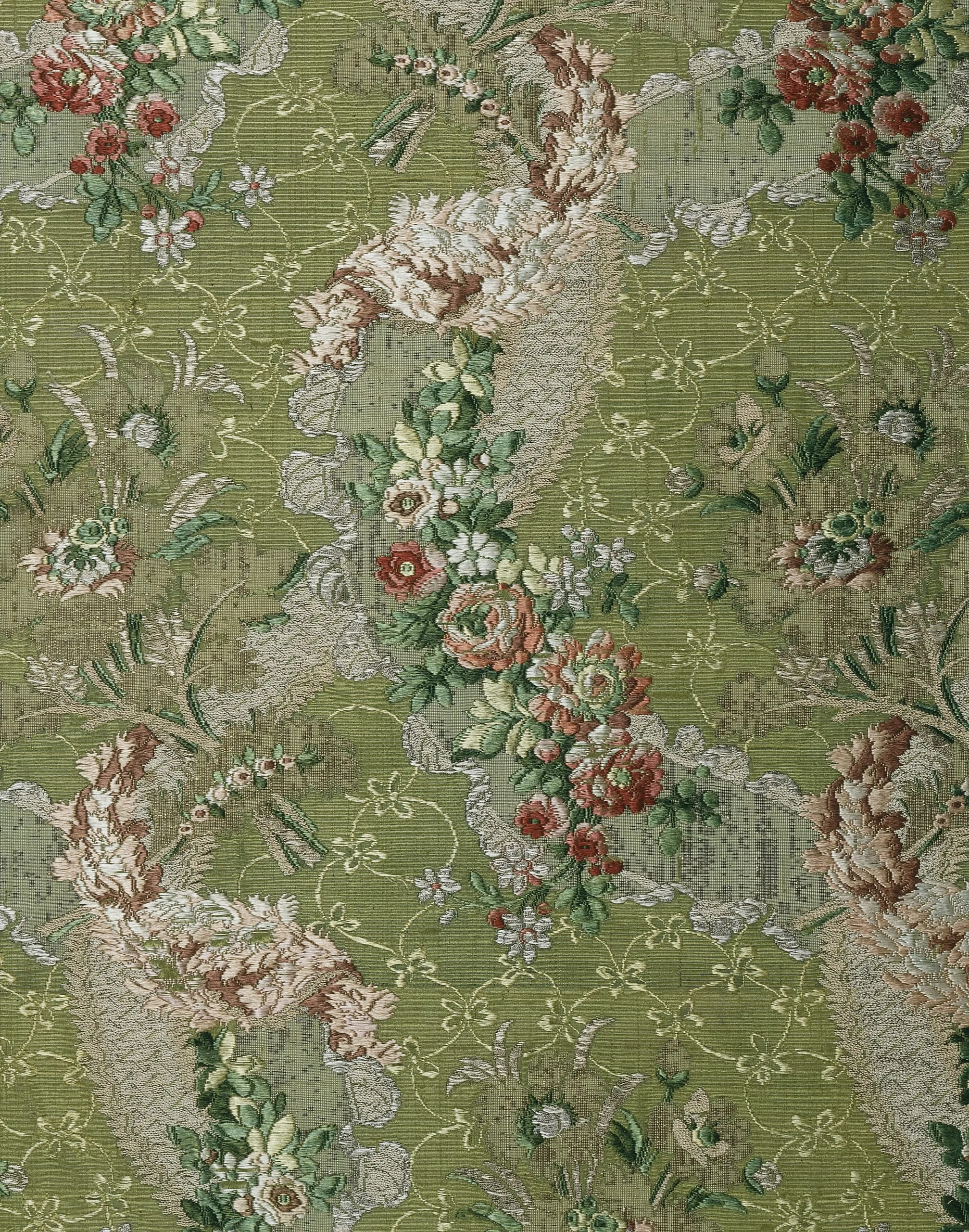 - Silk plain weave with silk supplementary warp and weft patterning, silk and metallic-thread discontinuous supplementary weft patterning (brocade)