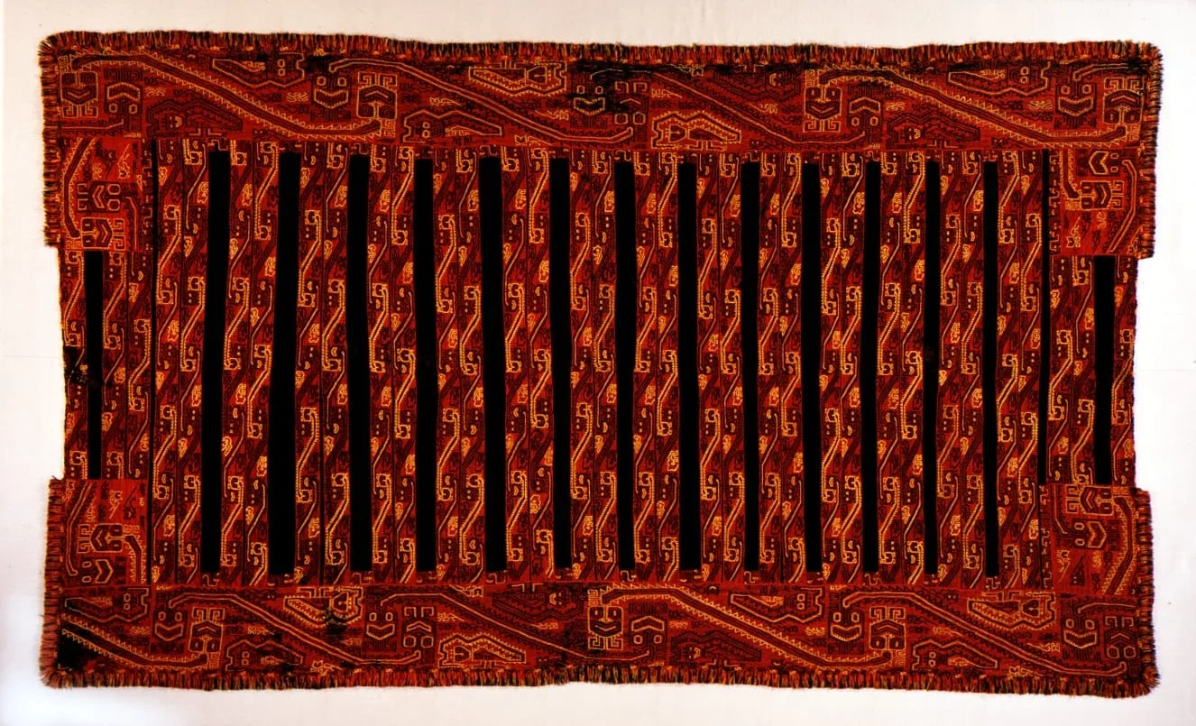 Like the ancient Egyptians and the Chinese, pre-Columbian peoples interred their dead with furnishings for the afterlife. In coastal Peru's dry climate ancient textiles have survived in remarkable numbers, emerging from their long darkness with astonishing freshness of color. Some date to two thousand years before Spanish contact.