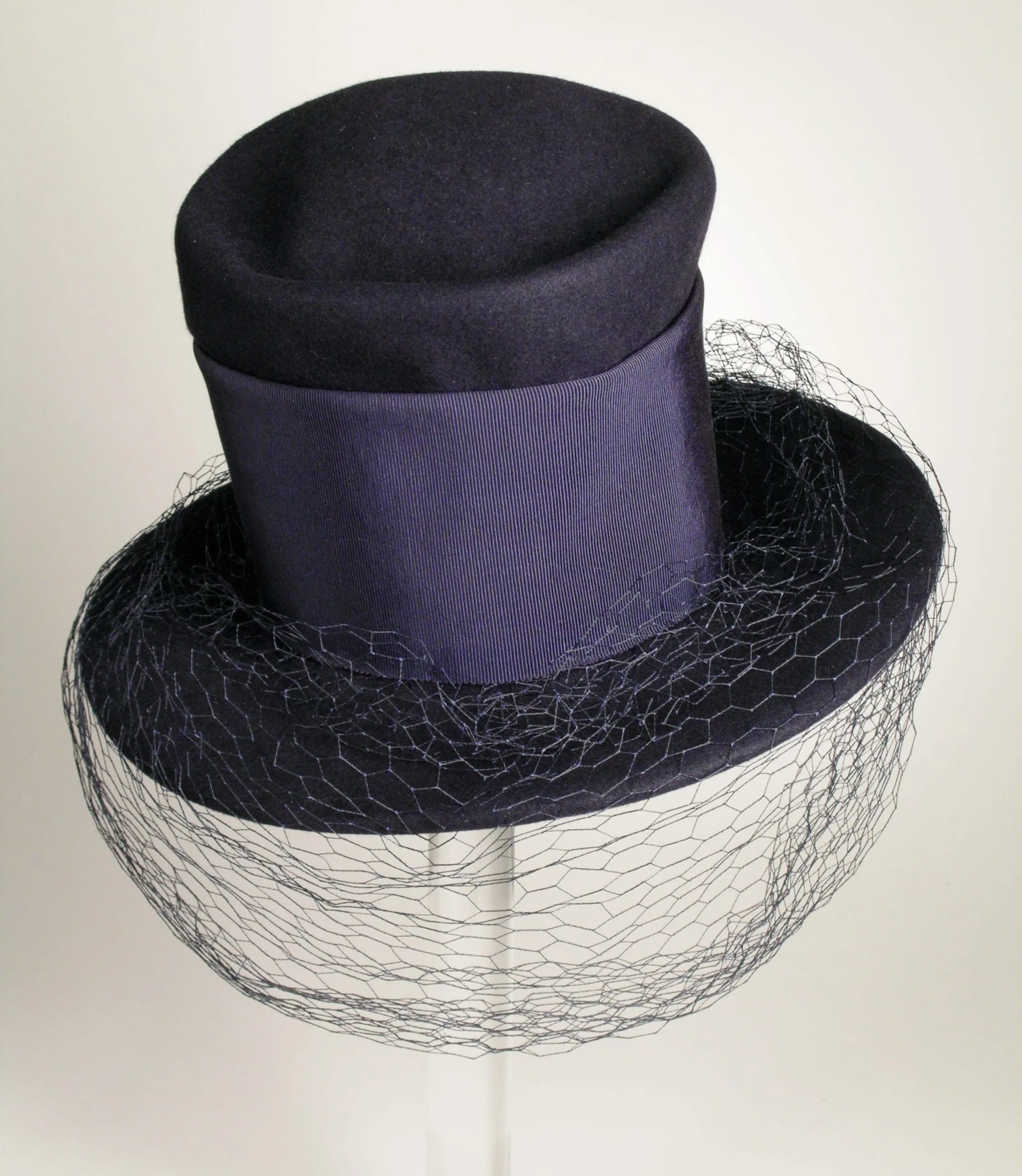 - Wool felt, grosgrain ribbon, silk net