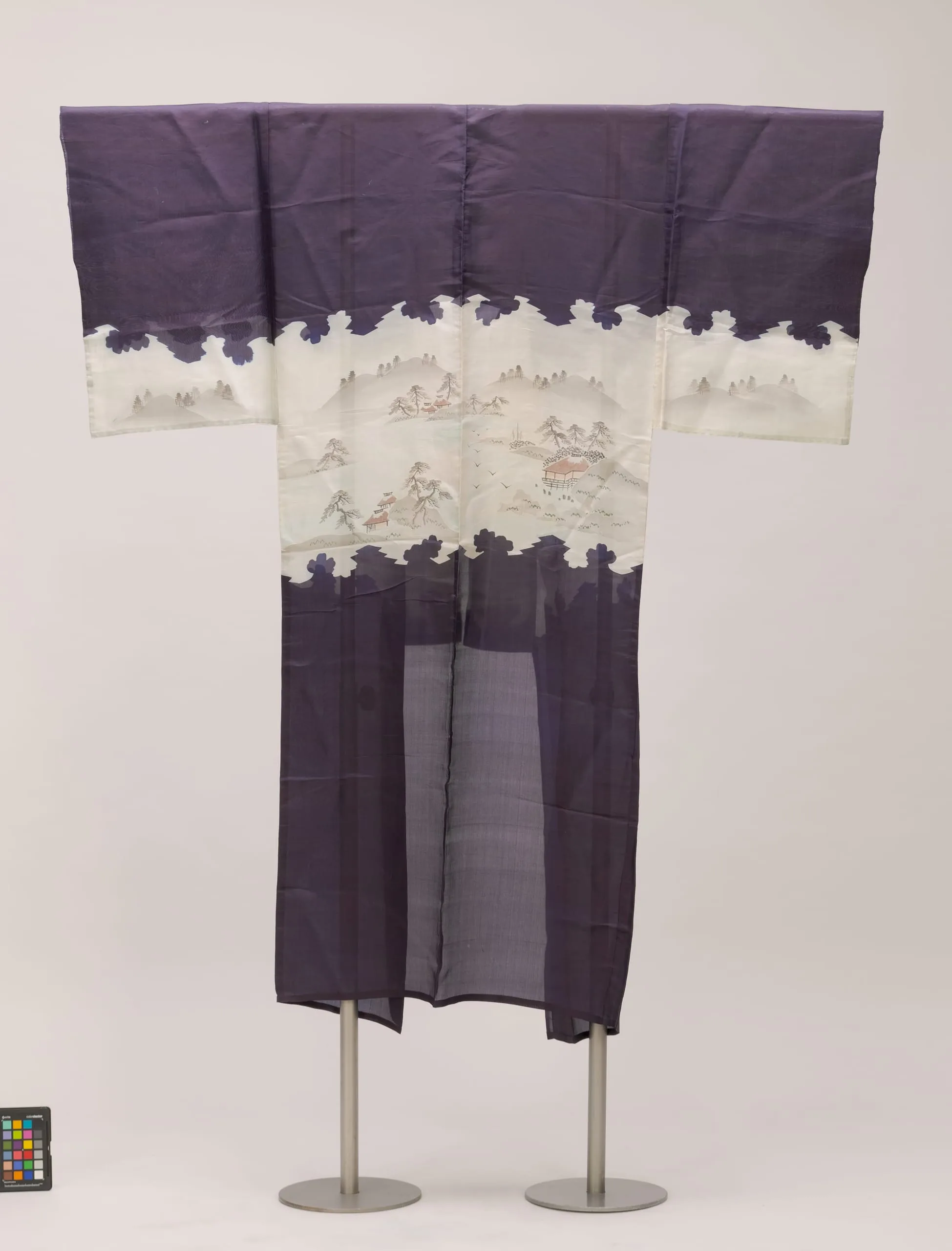 - Silk plain weave, paste-resist dyed and hand painted