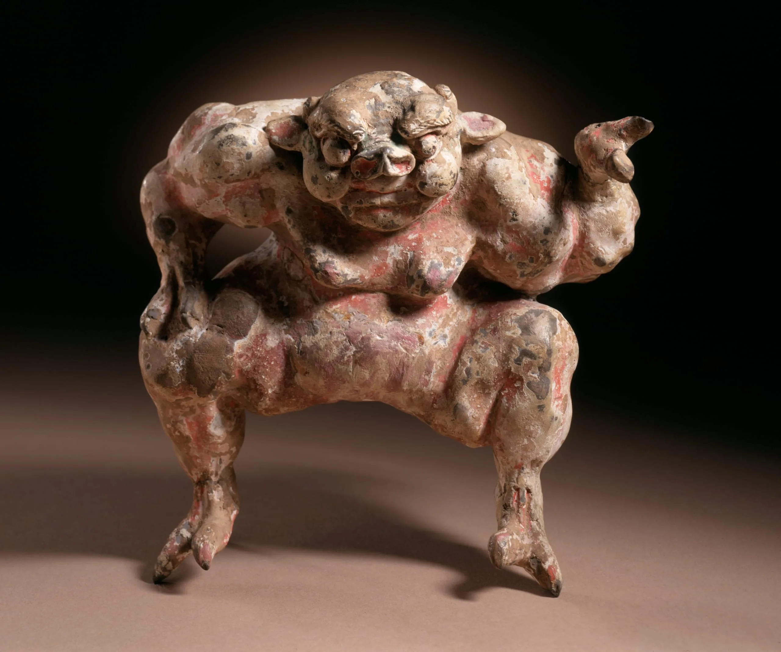 - Molded earthenware with incised decoration and traces of white slip and paint