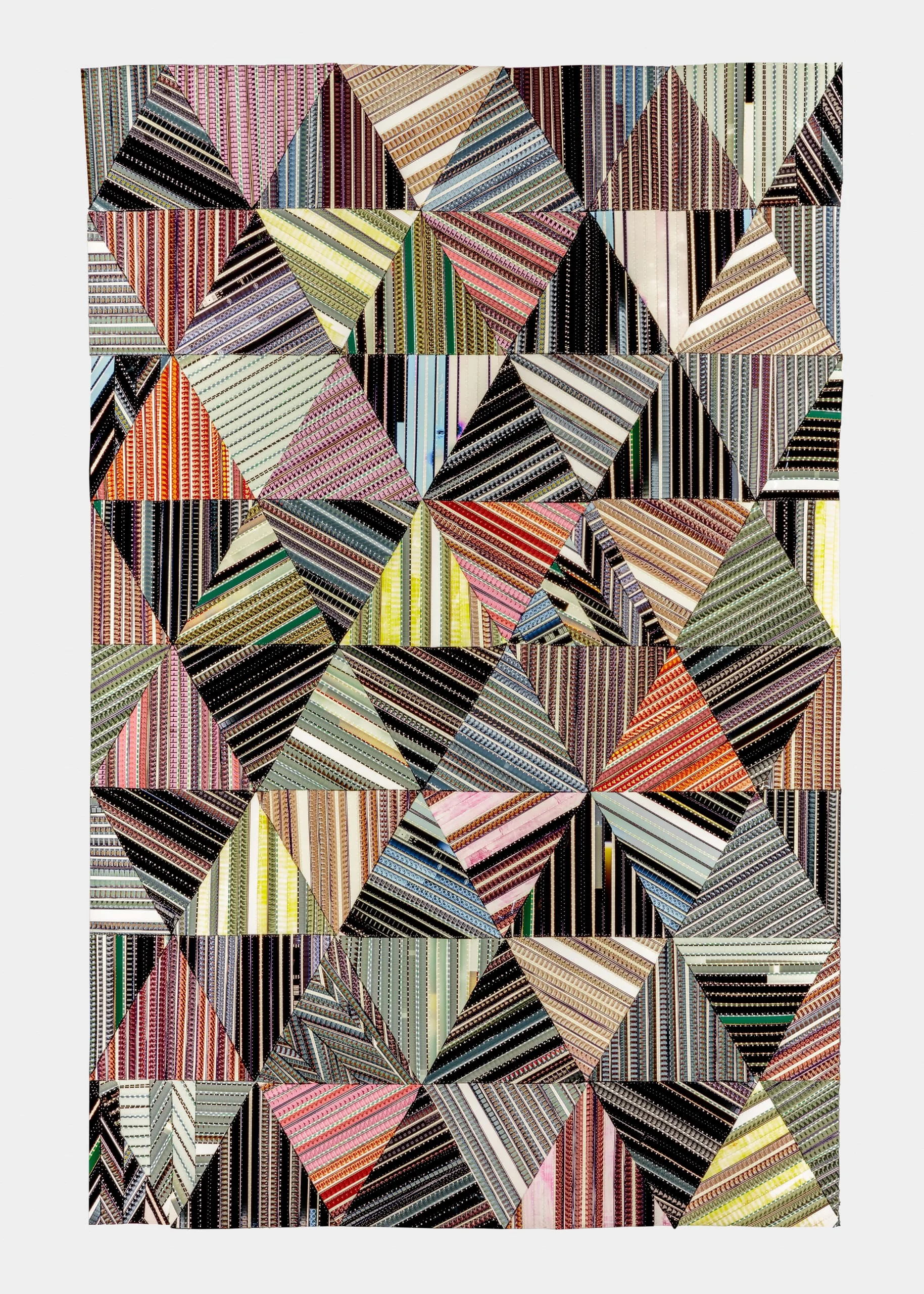 Sabrina Gschwandtner is an LA-based artist who works at the intersection of new media and traditional craft. For many years she has mined a collection of discarded 16mm short textile documentaries made between about 1950 and 1980. As she explained, "Not only had the movies’ subject matter - mostly that of women creating textiles - been deemed unworthy of archiving, but some of the film had faded or discolored, adding an additional layer of valuelessness." In a subversive act meant to celebrate the undervalued histories of women’s work, Gschwandtner arranged the rescued footage in compositions based on historical American quilt patterns and joined the strips together on her sewing machine. Gschwandtner uses two media that have both become obsolete but are also being embraced by a new generation of artists eager to capitalize on their inherent quality and "slowness." Neither a film nor a textile, Gschwandtner’s Hands at Work series defies these categorical boundaries.