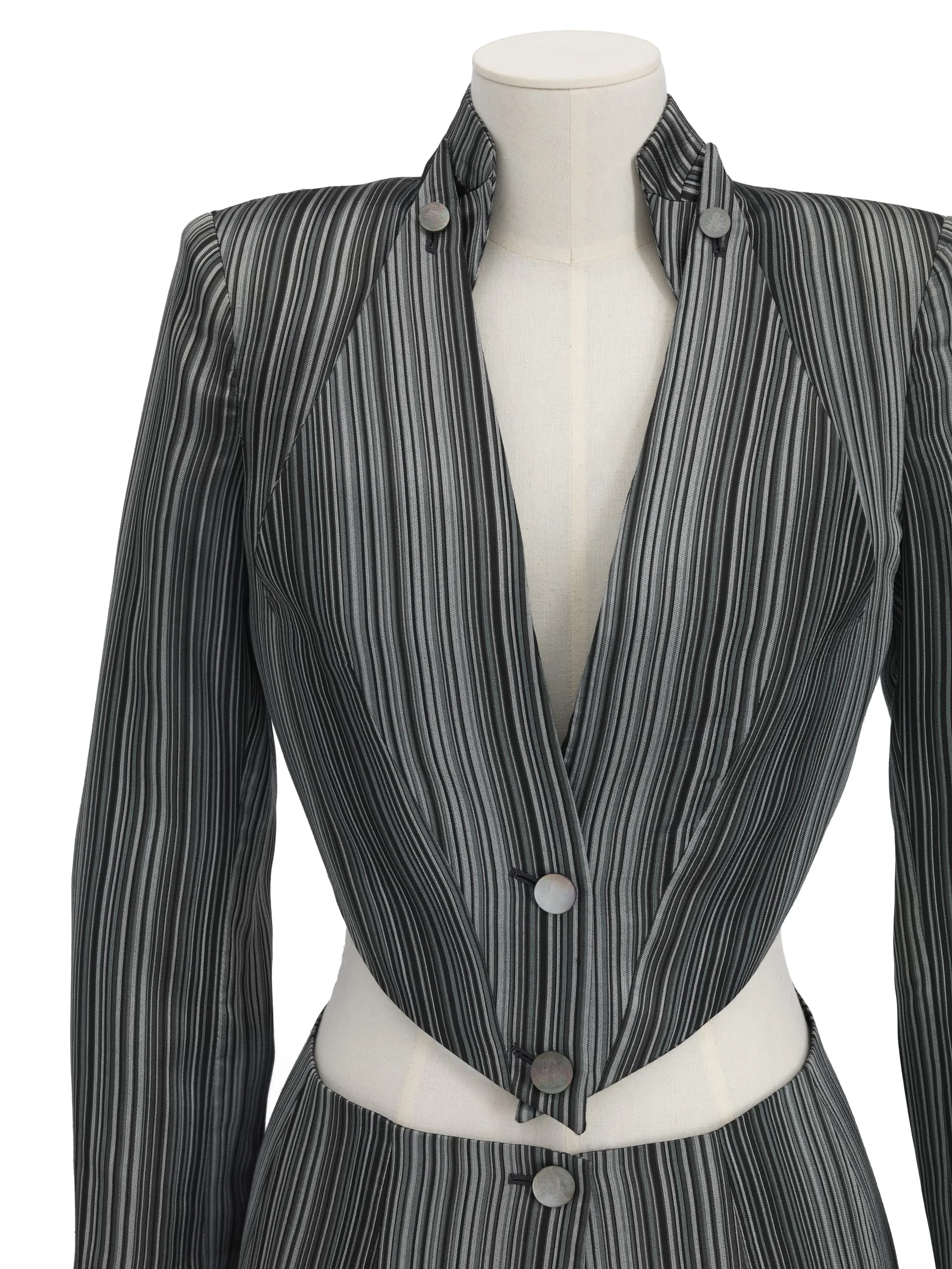 - Cotton/rayon/silk twill weave with engraved mother-of-pearl buttons