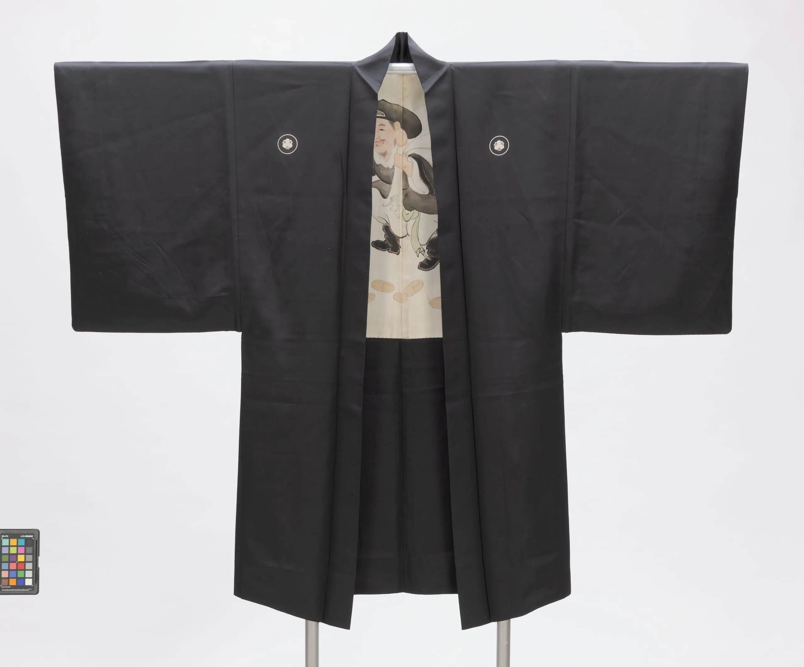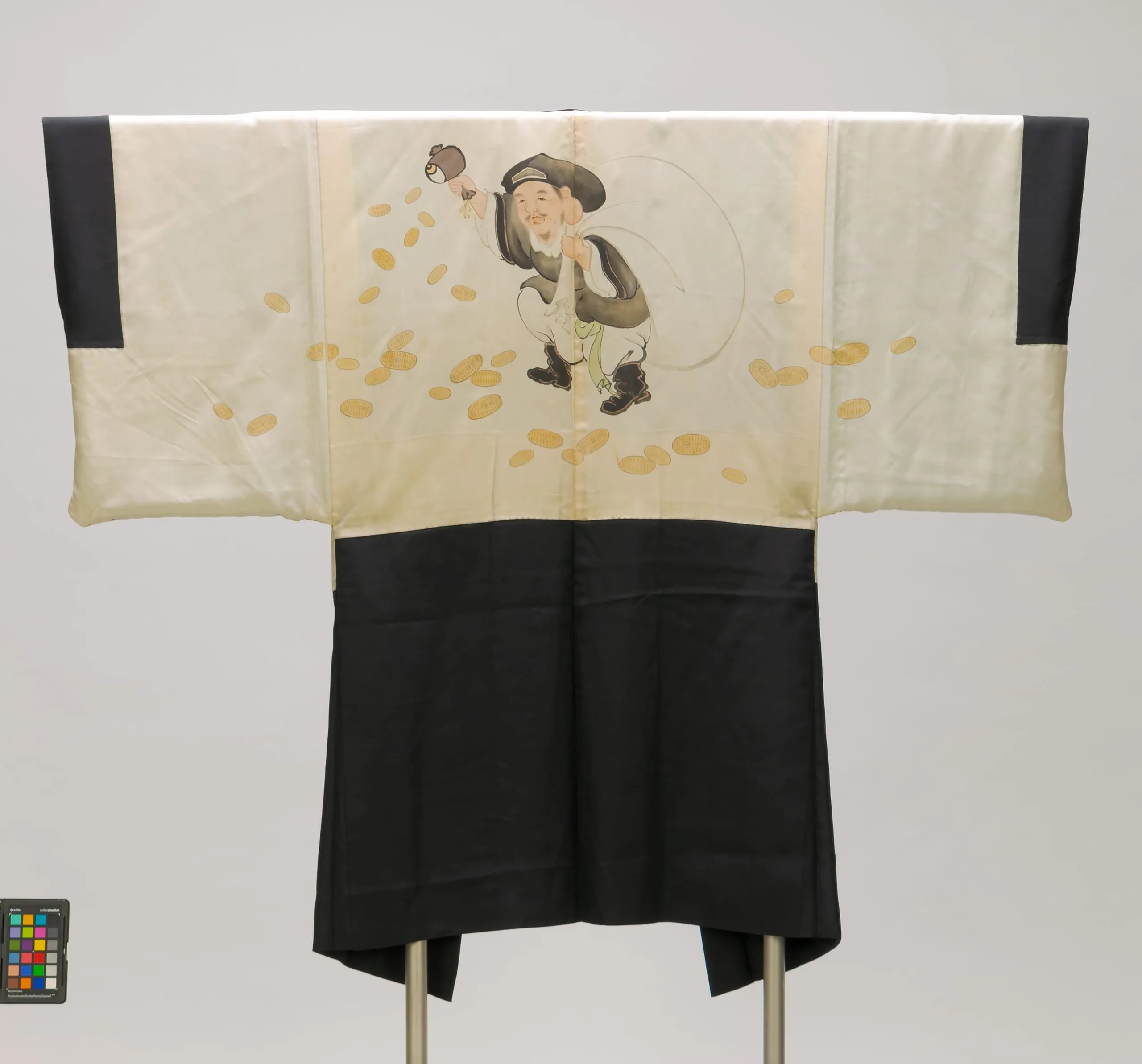 - Man's Formal Kimono-style Jacket (haori) with Daikoku (God of Wealth, Guardian of Farmers) Shaking a Magic Mallet (uchide no kozuchi) with Scattered Gold Coins