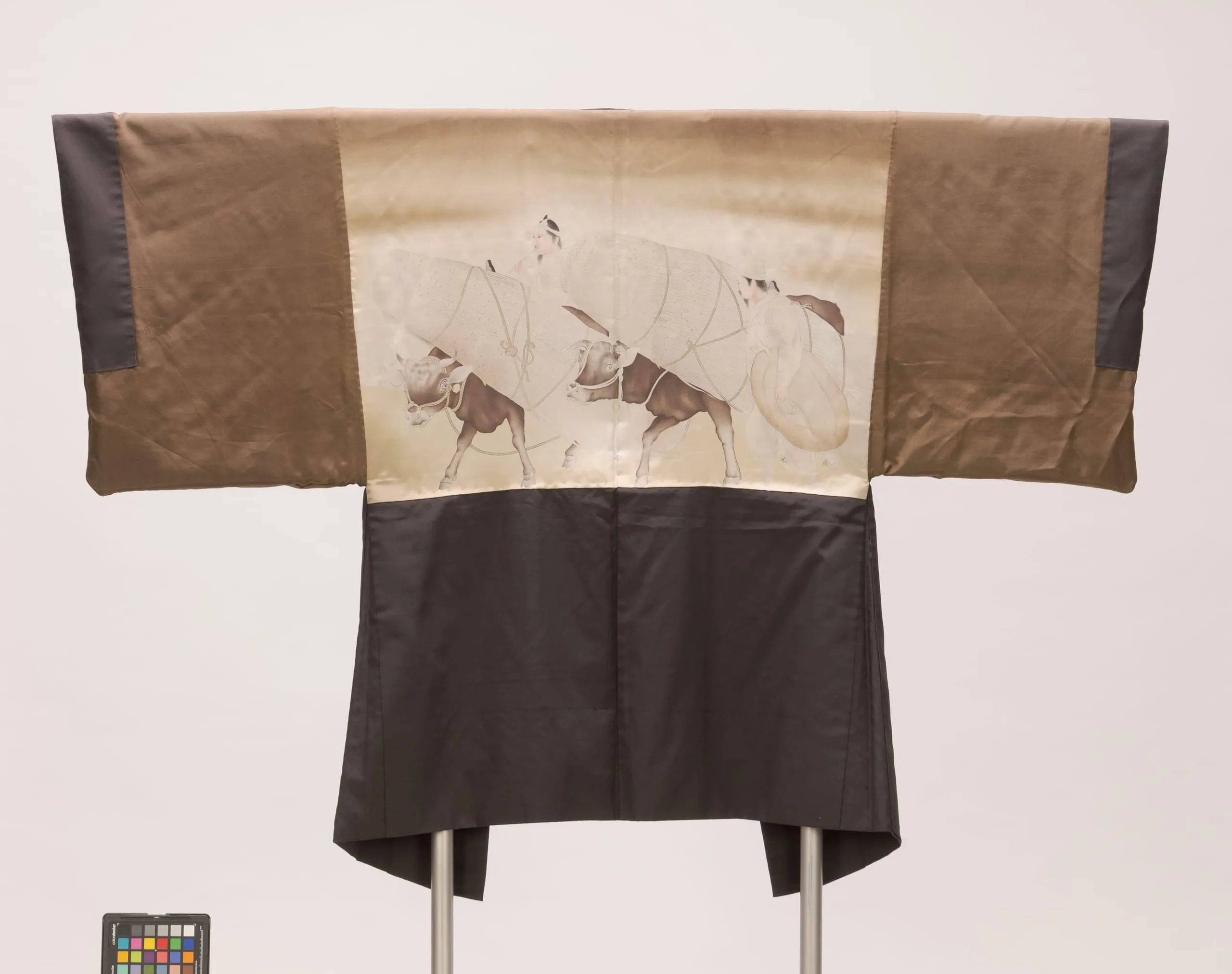 - Man's Kimono-style Jacket (haori) with Two Korean Men and Oxen carrying Bamboo