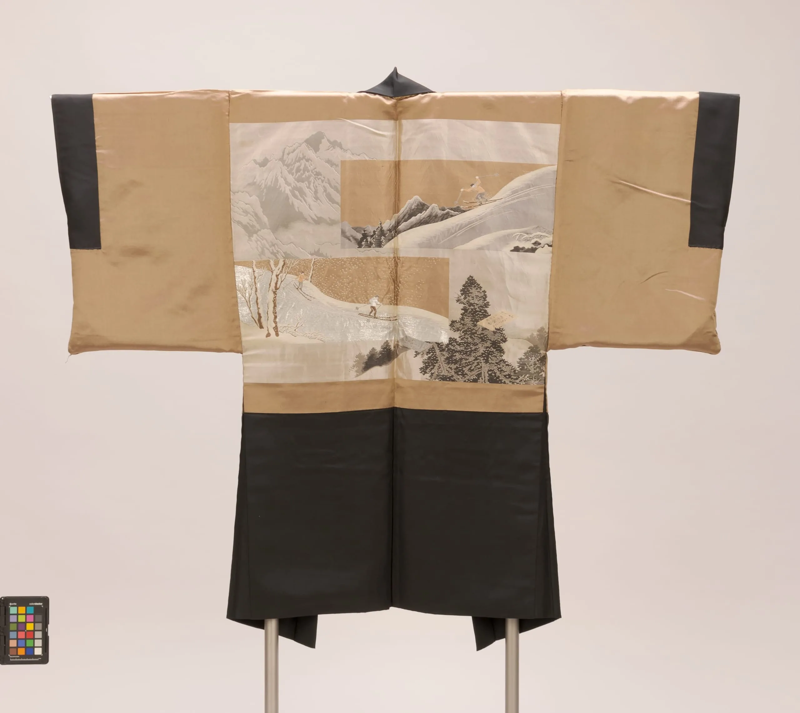 - Man's Formal Kimono-style Jacket (haori) with Snow Skiing Scenes