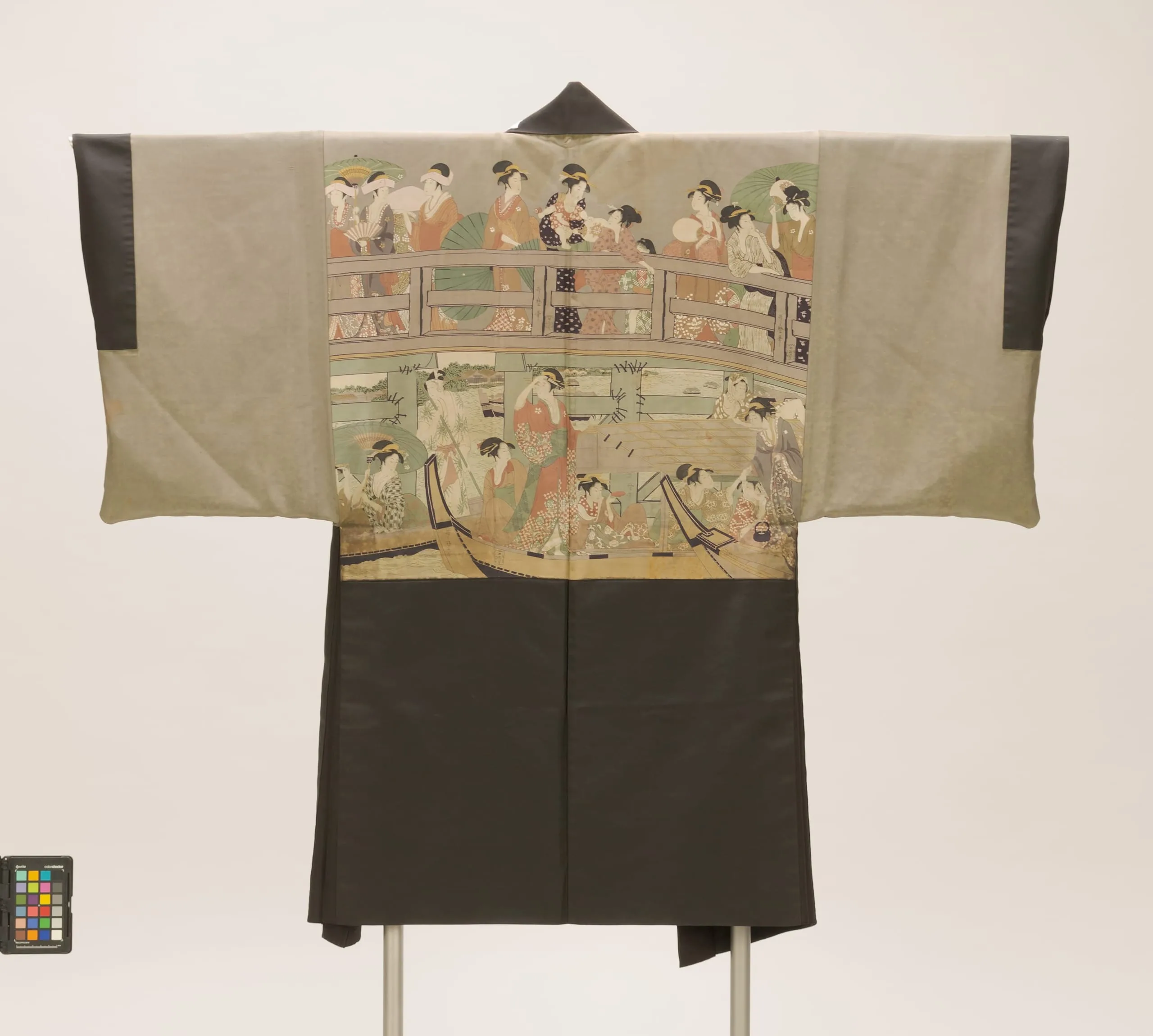 - Man's Kimono-style Jacket (haori) with Image of 'On Top and Beneath Ryōgoku Bridge' by Kitagawa Utamaro
