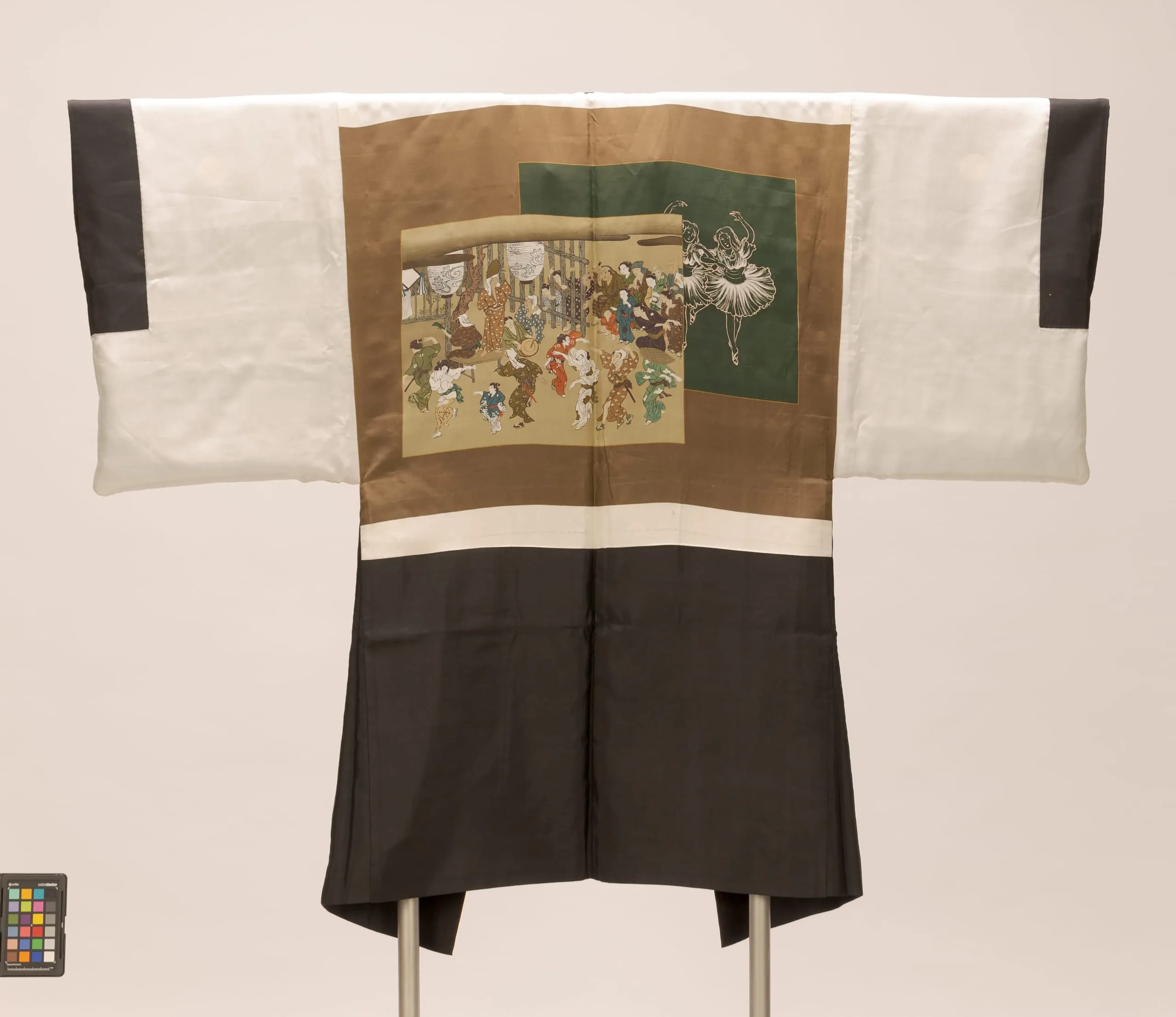 - Man's Formal Kimono-style Jacket (haori) with Scenes of Traditional Japanese Dance and Western Ballet