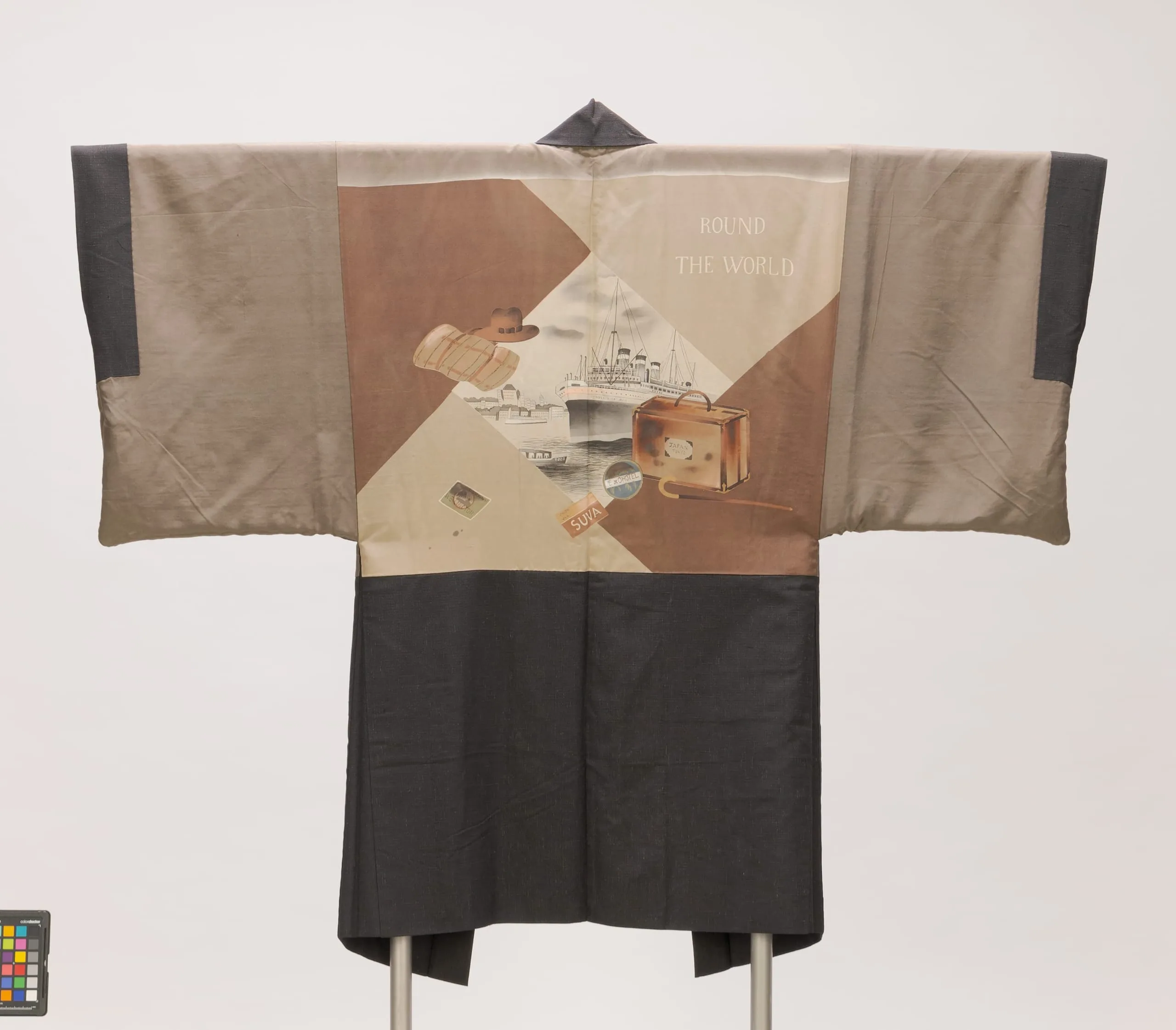 - Man's Kimono-style Jacket (haori) with "Round The World" Travel Scene