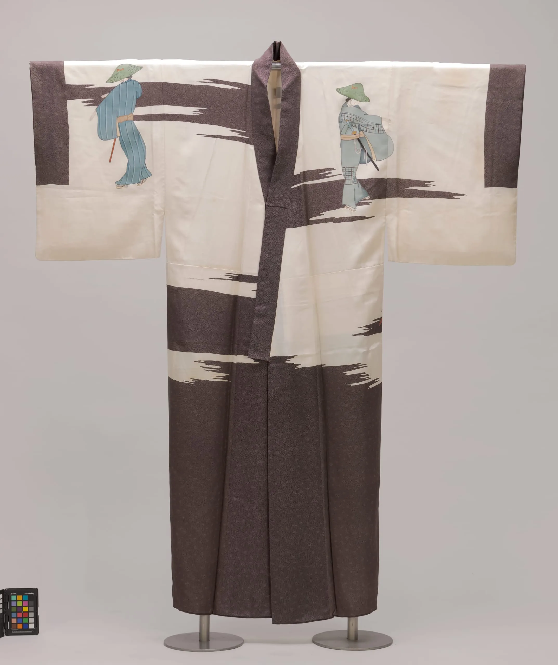- Silk plain weave (habutai), stenciled dye paste (kata yūzen)