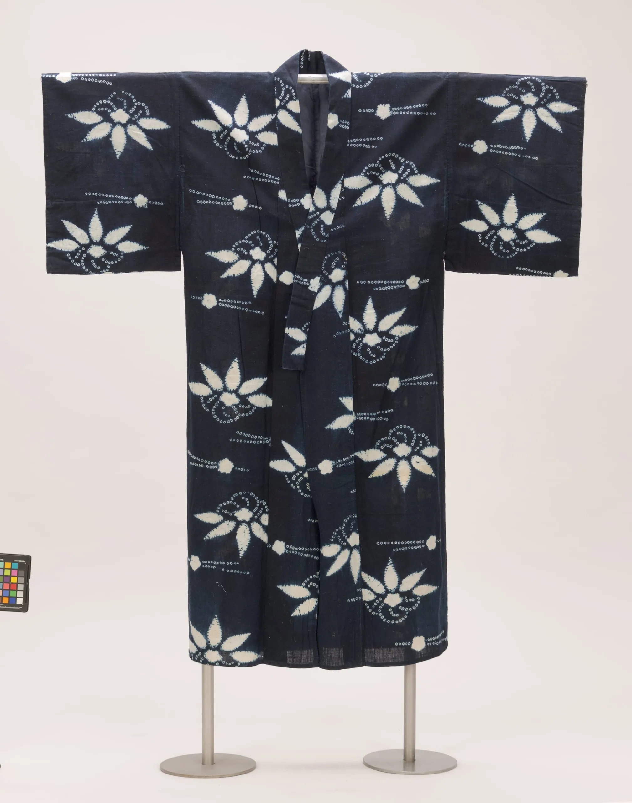 - Cotton plain weave, tie-resist dyed (bōshi and kanoko shibori),