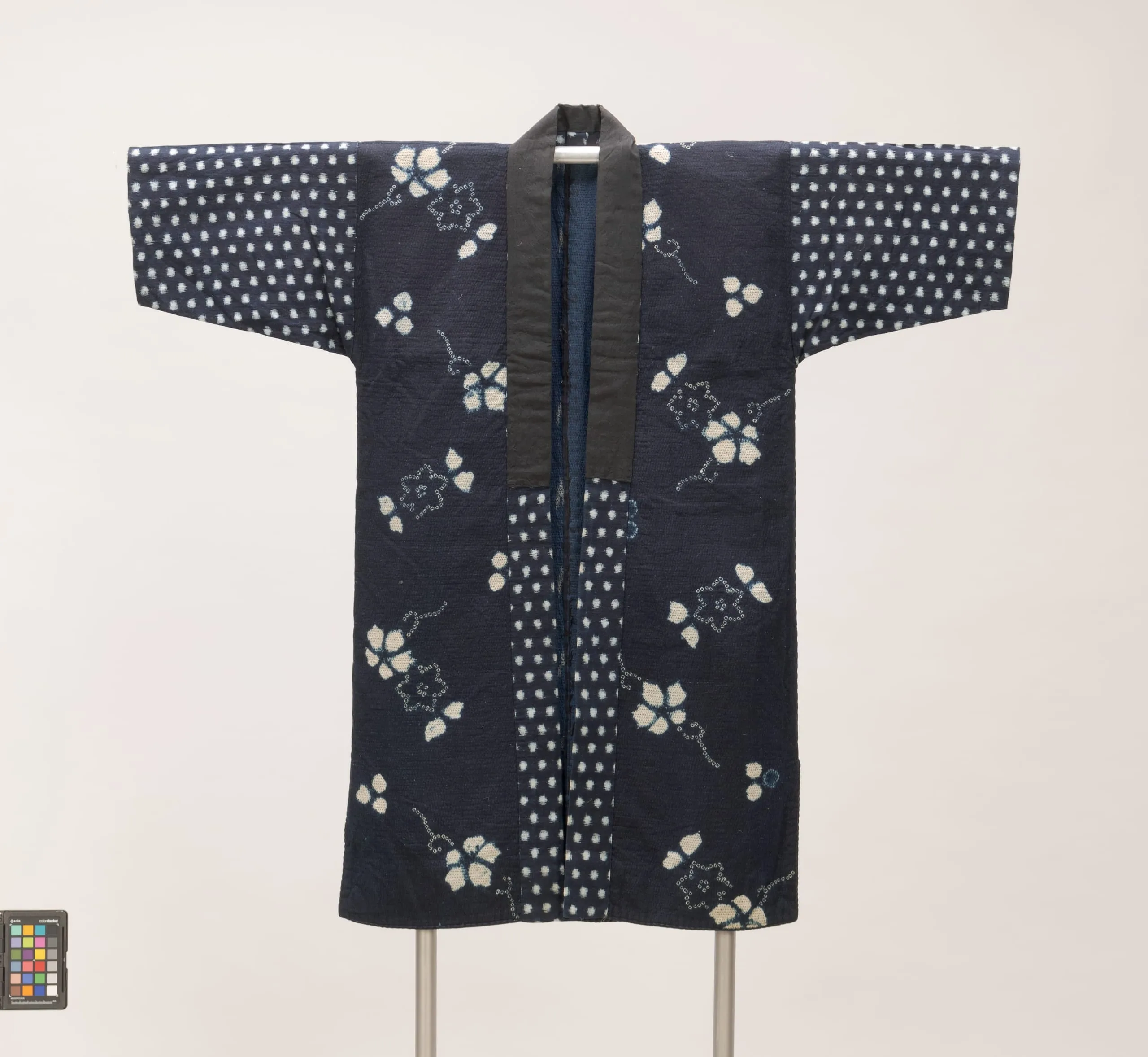- Cotton plain weave, tie-resist dyed (bōshi and kanoko shibori), quilted (sashiko); cotton plain weave, tie-resist dyed warp and weft ikat (tate and yoko kasuri)