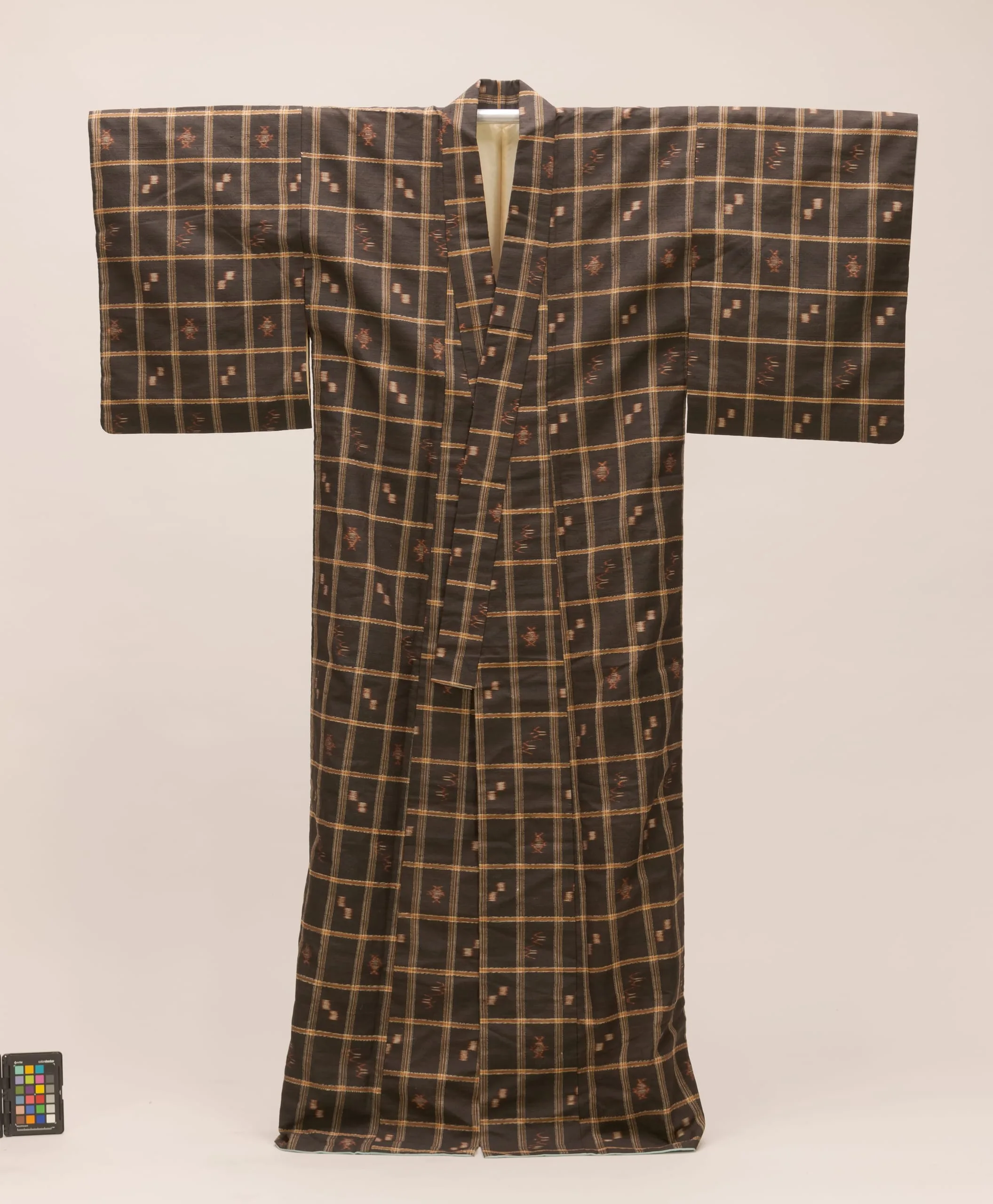 - Woman's Kimono with Lattice, Abstract Birds, and Geometric Designs